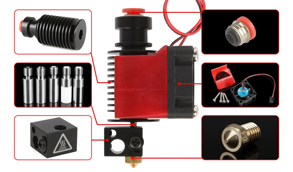 Comprar XCR-piezas de impresora 3D E3D V6 Hotend Kit, extrusora de Cabeza J de Metal, boquilla de bloque calentada, accesorios de ventilador de refrigeración de filamento de 0,4/1,75mm