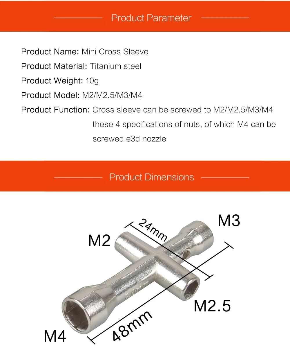 XCR3D 2 uds piezas de impresora 3D Mini llave de manga cruzada herramientas de mantenimiento de tuerca de llave de demolición para boquilla e3d v6 M2 M2.5 M3 M4