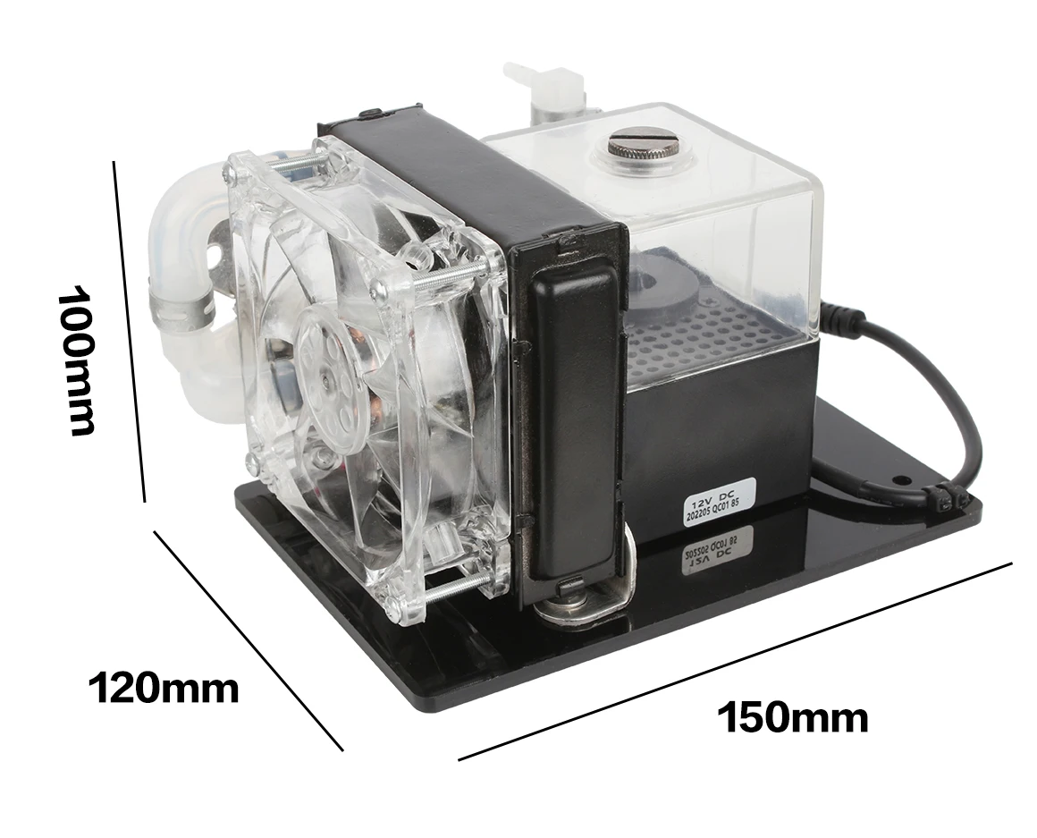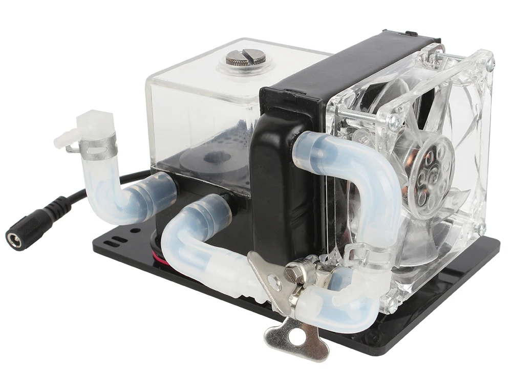 El voltaje del kit de refrigeración por agua es de 12 o 24V, que corresponde directamente al voltaje de la fuente de alimentación.