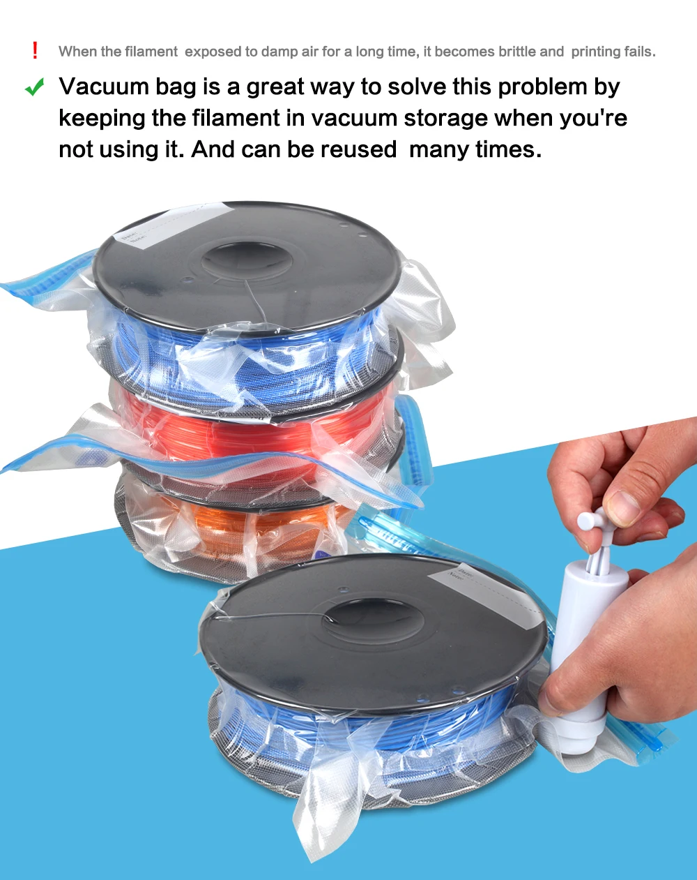 Comprar XCR3D-bolsas de sellado al vacío para impresora 3D, almacenamiento de filamentos para mantener la seguridad seca, resistente a la humedad, para piezas de impresora 3D, PLA, ABS, TPU, PETG, 1KG