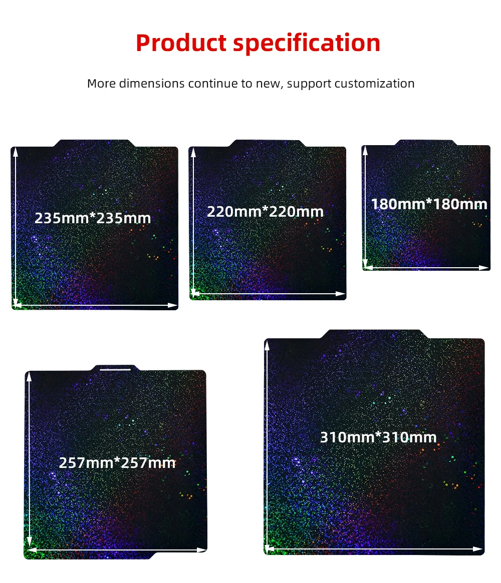 XCR3D-hoja de acero de resorte PEY + PEI de doble cara, placa de construcción magnética suave, cama caliente, piezas de impresora 3D, 180, 220, 235, 257, 310mm