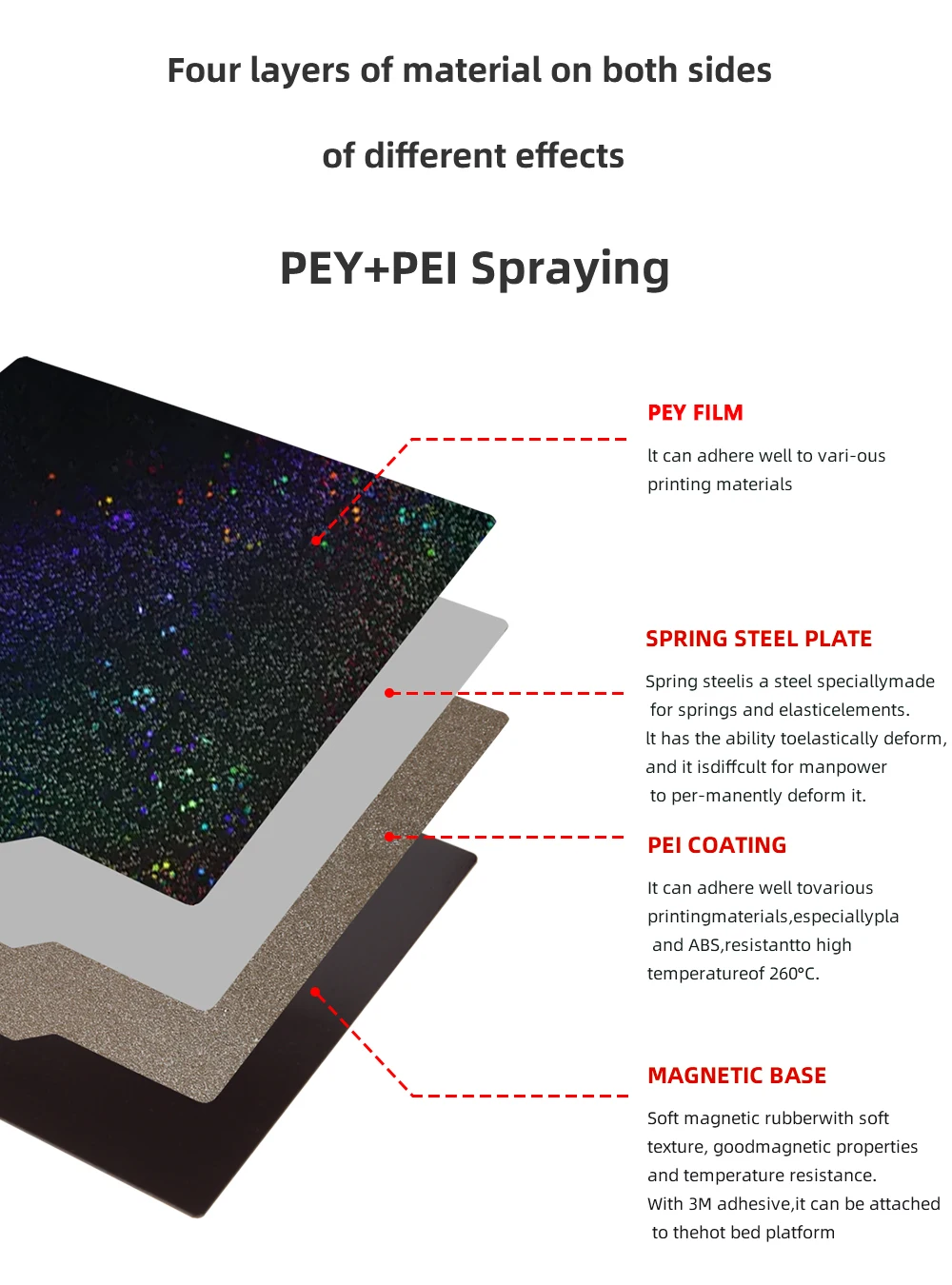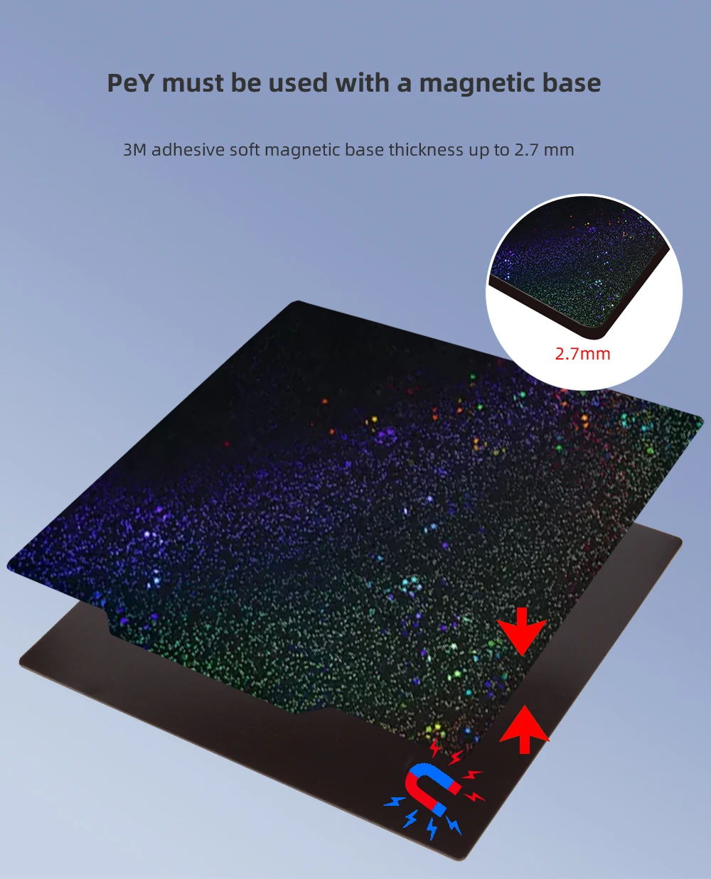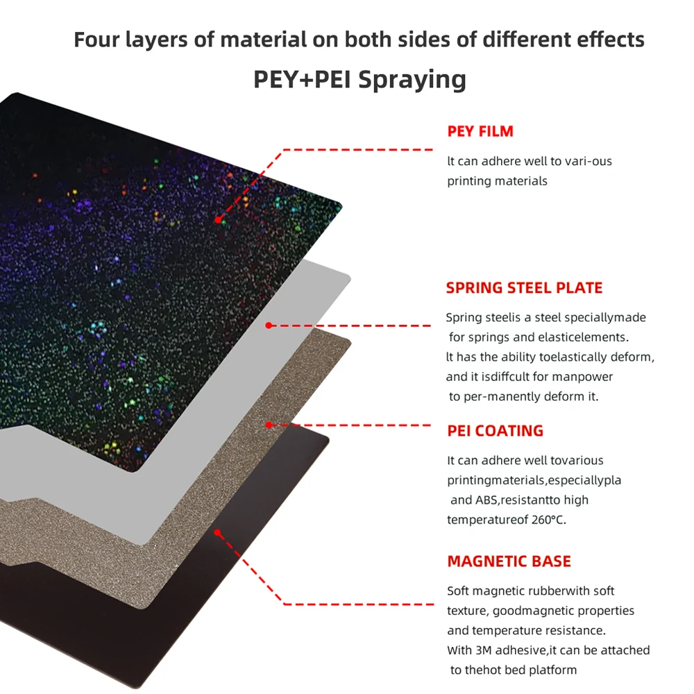 Comprar XCR3D-hoja de acero de resorte PEY + PEI de doble cara, placa de construcción magnética suave, cama caliente, piezas de impresora 3D, 180, 220, 235, 257, 310mm
