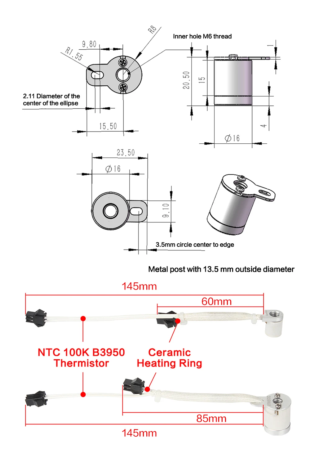 Comprar XCR3D-KIT de CH-C hotend 24V60W, núcleo de calentamiento de cerámica, calentamiento rápido, M6 suave universal para ender3 CR10 CR-6 SE mk3s, pieza de impresora 3D