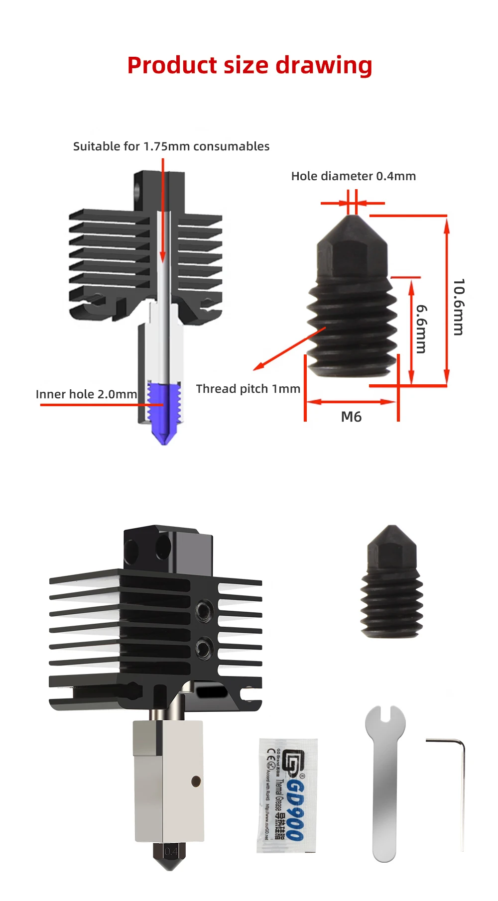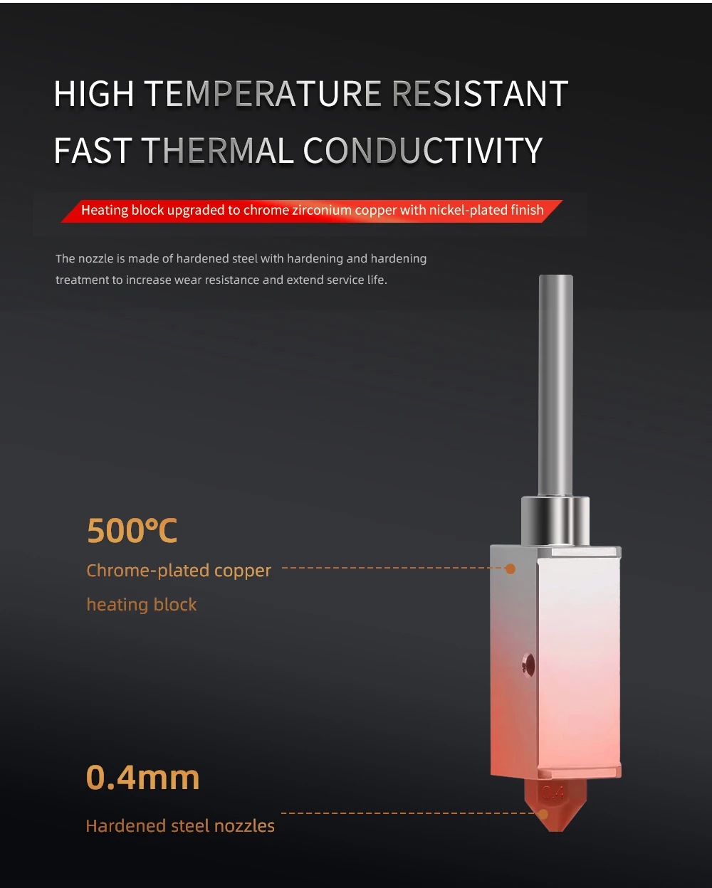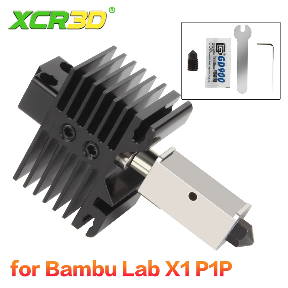 XCR3D piezas de impresora 3D, Kit de extrusora hotend Uprgraded, bloque de calentador de cobre plateado, boquilla de acero endurecido para laboratorio de bambú X1/P1P