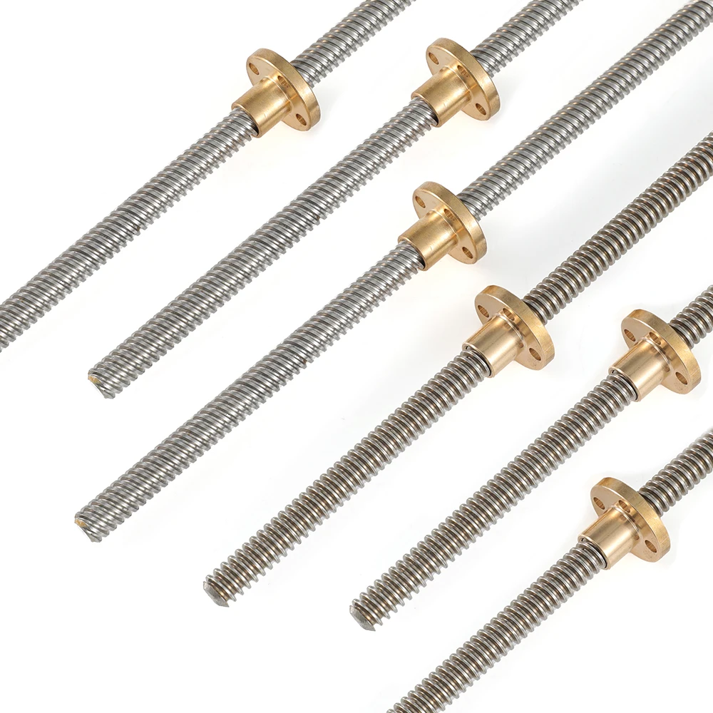 Comprar XCR3D piezas de impresora 3D T8 tornillo de avance 250mm 300mm 350mm 400mm 450mm plomo 2mm 4mm 8mm acero inoxidable con tuerca de latón