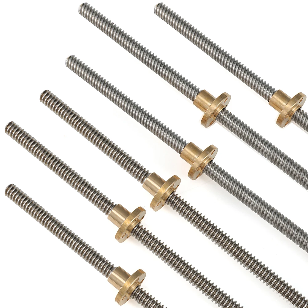 Comprar XCR3D piezas de impresora 3D T8 tornillo de avance 250mm 300mm 350mm 400mm 450mm plomo 2mm 4mm 8mm acero inoxidable con tuerca de latón