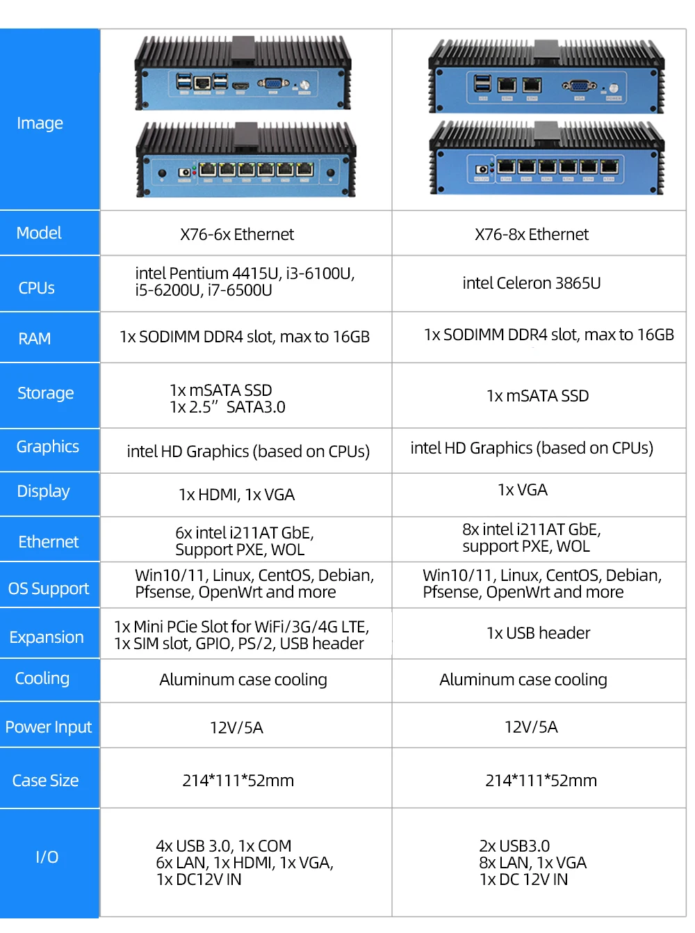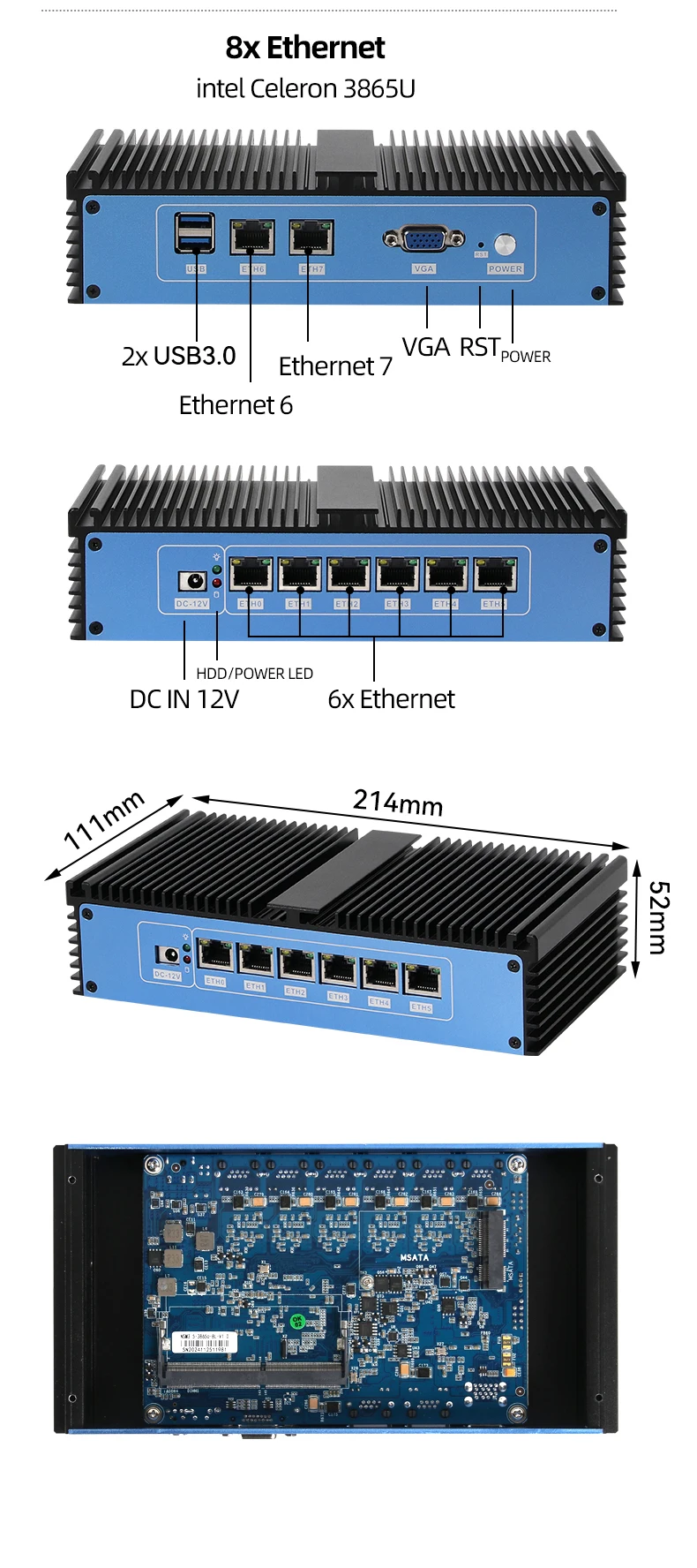 Comprar XCY Firewall Mini PC 8x Ethernet i211AT NIC intel Celeron 3865U CPU Compatible con Windows Ubuntu Pfsense Debian OpenWrt