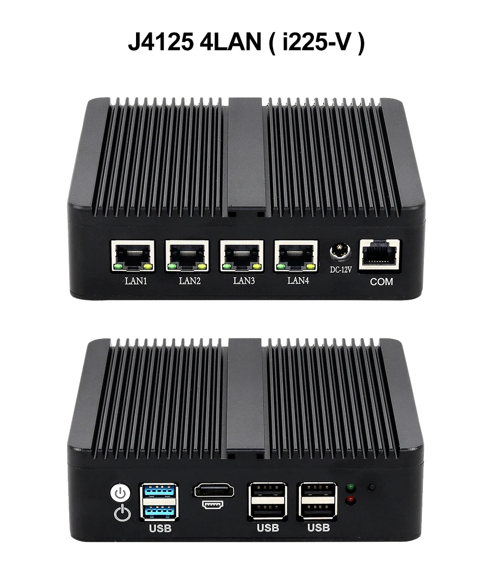 XCY Firewall Pfsense PC Intel Celeron J4125 J1900 J1800 N2830 Router 4 * Puertos Ethernet Windows 10 Pro HTPC VGA Fanless Linux Mini PC