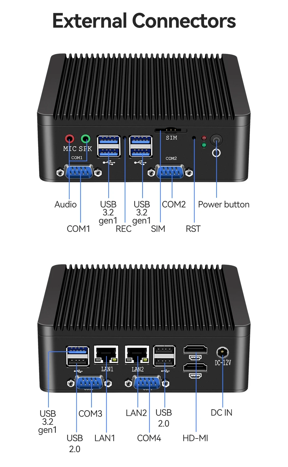 1 x COM_CONN (4 * COM232, COM1 admite ajuste RS232/485 en puente J1)
