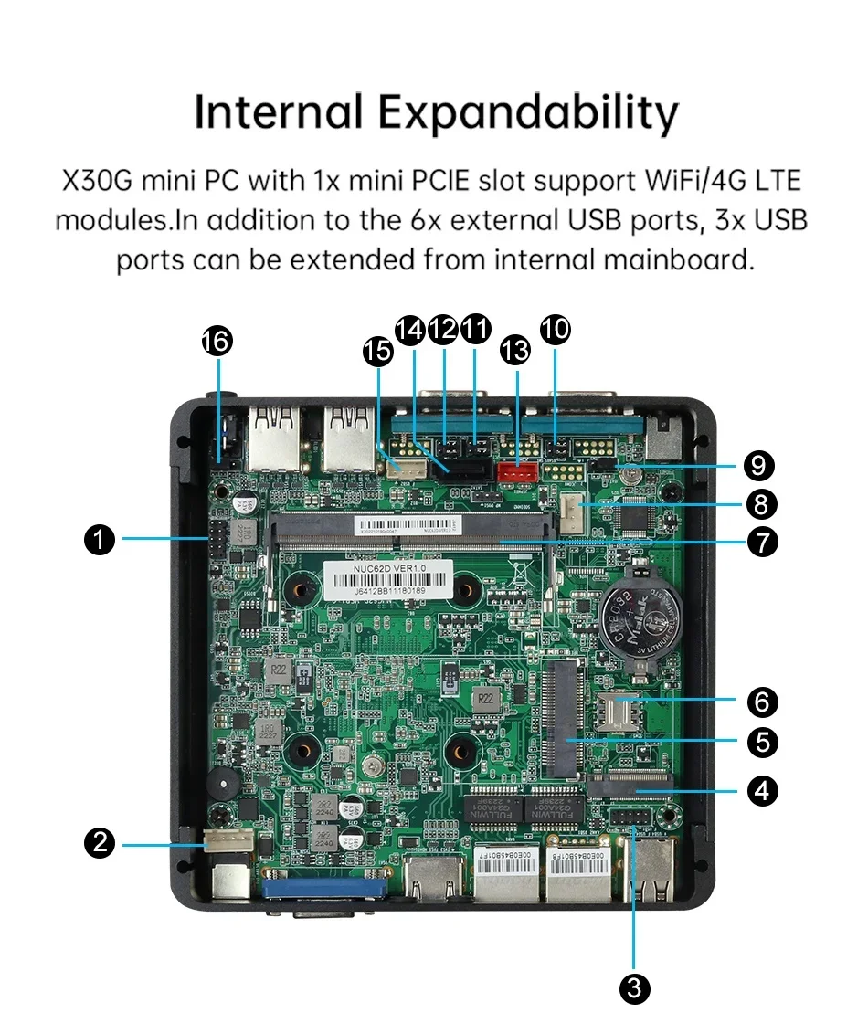1 x mini zócalo PCIe para módulos WiFi/3G 4G LTE