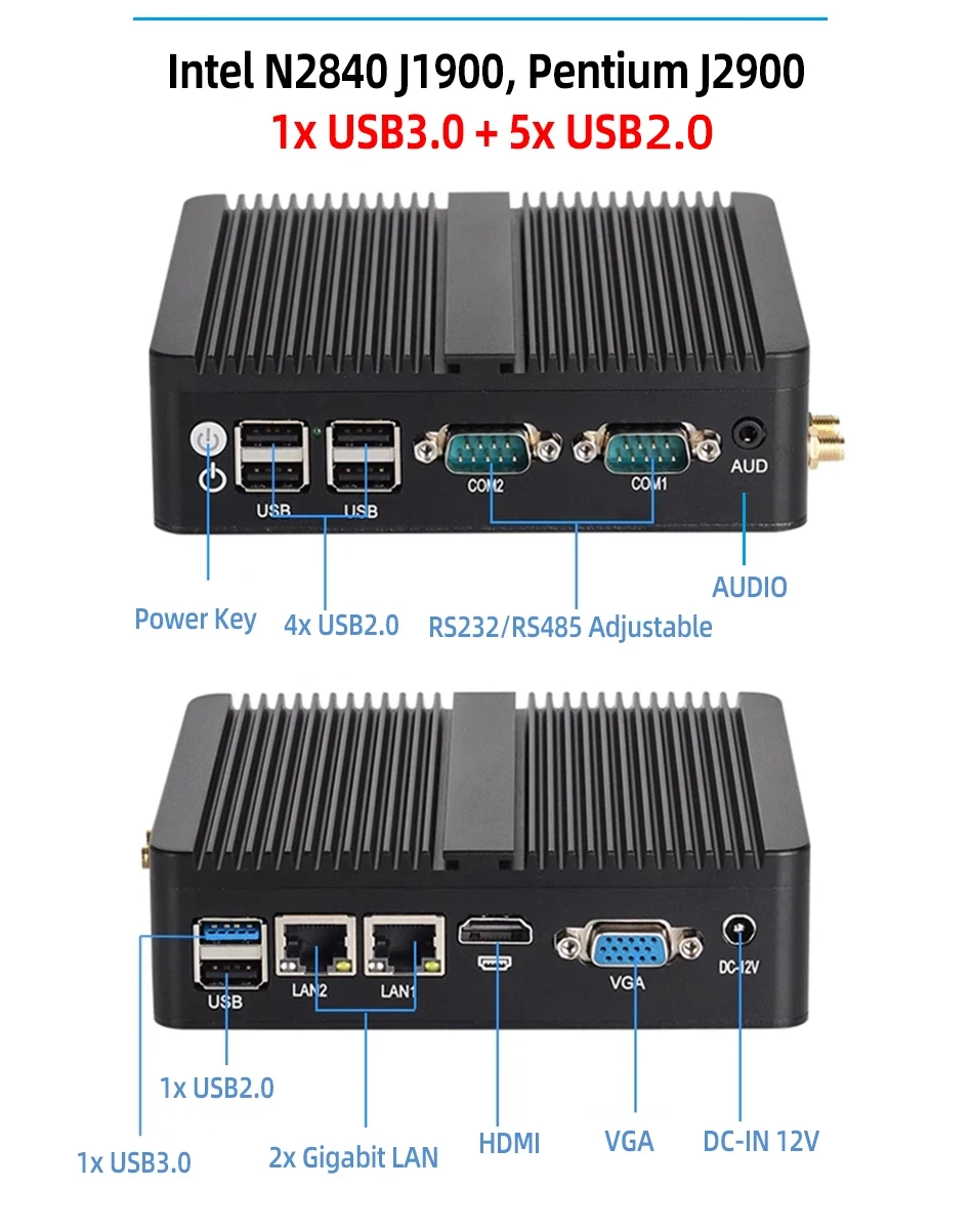 Comprar XCY-Mini PC Industrial Sin ventilador, Intel Celeron J6412 8GB DDR4 512GB M.2 NVMe SSD 2COM RS485/232 2 GbE LAN 6USB Windows 10/11 Linux