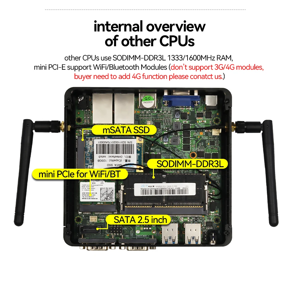 1.Compre sin RAM sin opción SSD, la mini PC viene sin WiFi y las antenas preinstaladas;2.Compre mini PC con opción RAM y SSD, la mini PC viene con WiFi y antenas preinstaladas;Comprar XCY Mini PC Intel Celeron J4125 cuatro núcleos 2x RS232 Dual Ethernet Mini PCIe WiFi HDMI VGA sin ventilador Industrial IPC Windows Linux