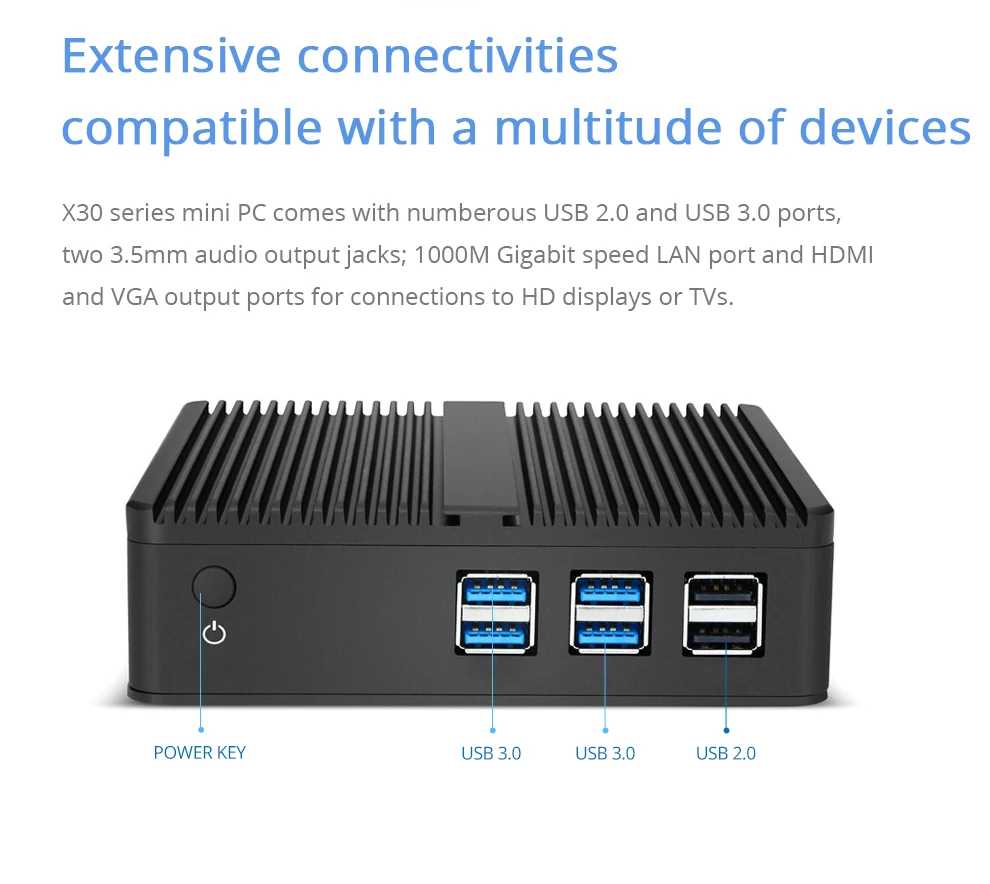 XCY - X30 Serie Mini Computadoras Intel Core I3/i5/i7/ Intel Celeron Procesadores, RAM, mSATA SSD, HDMI + VGA Dual Display, Soporte Windows y Linux/Ubuntu, home Theater/Ordenadores de oficina/Ordenadores industriales integrados/Ordenadores de biblioteca/Ordenadores de caja registradora