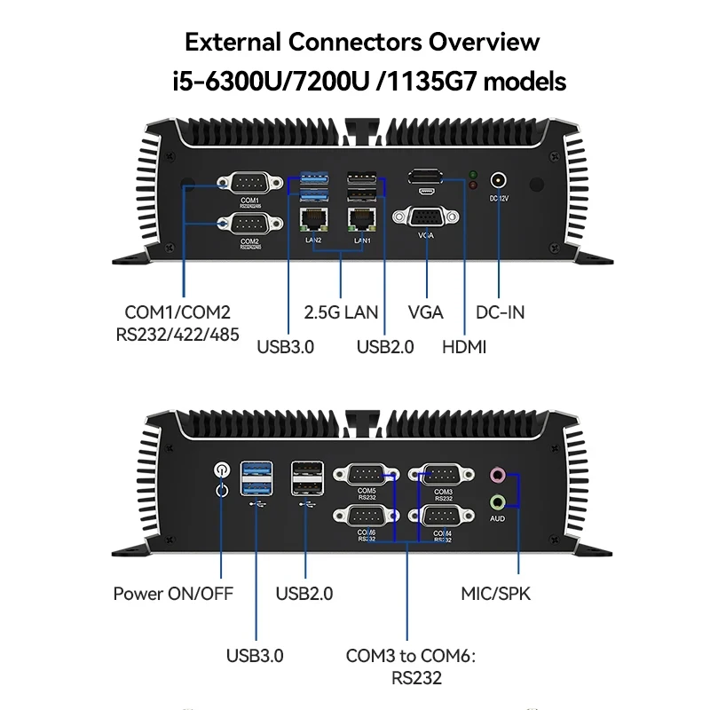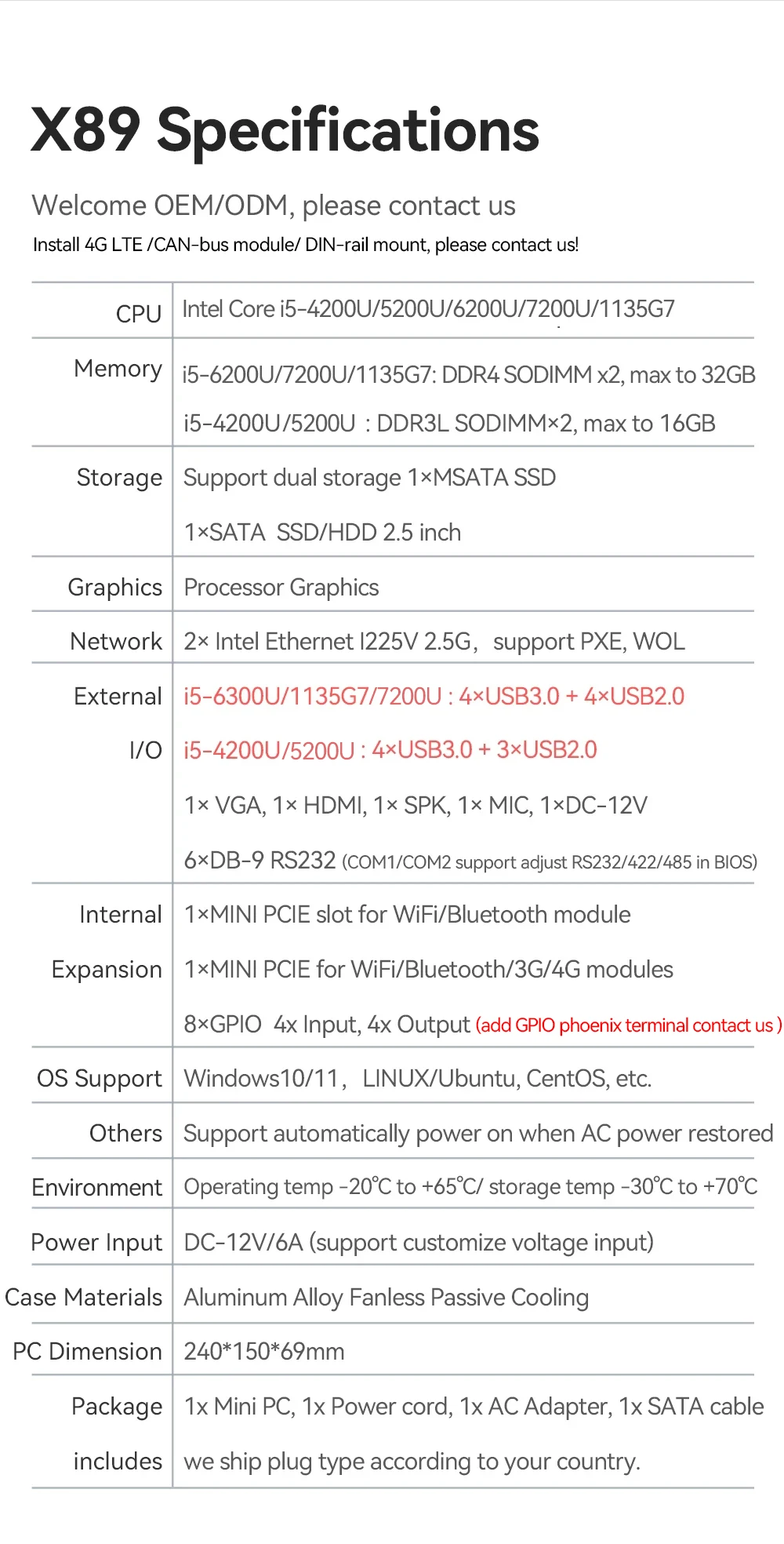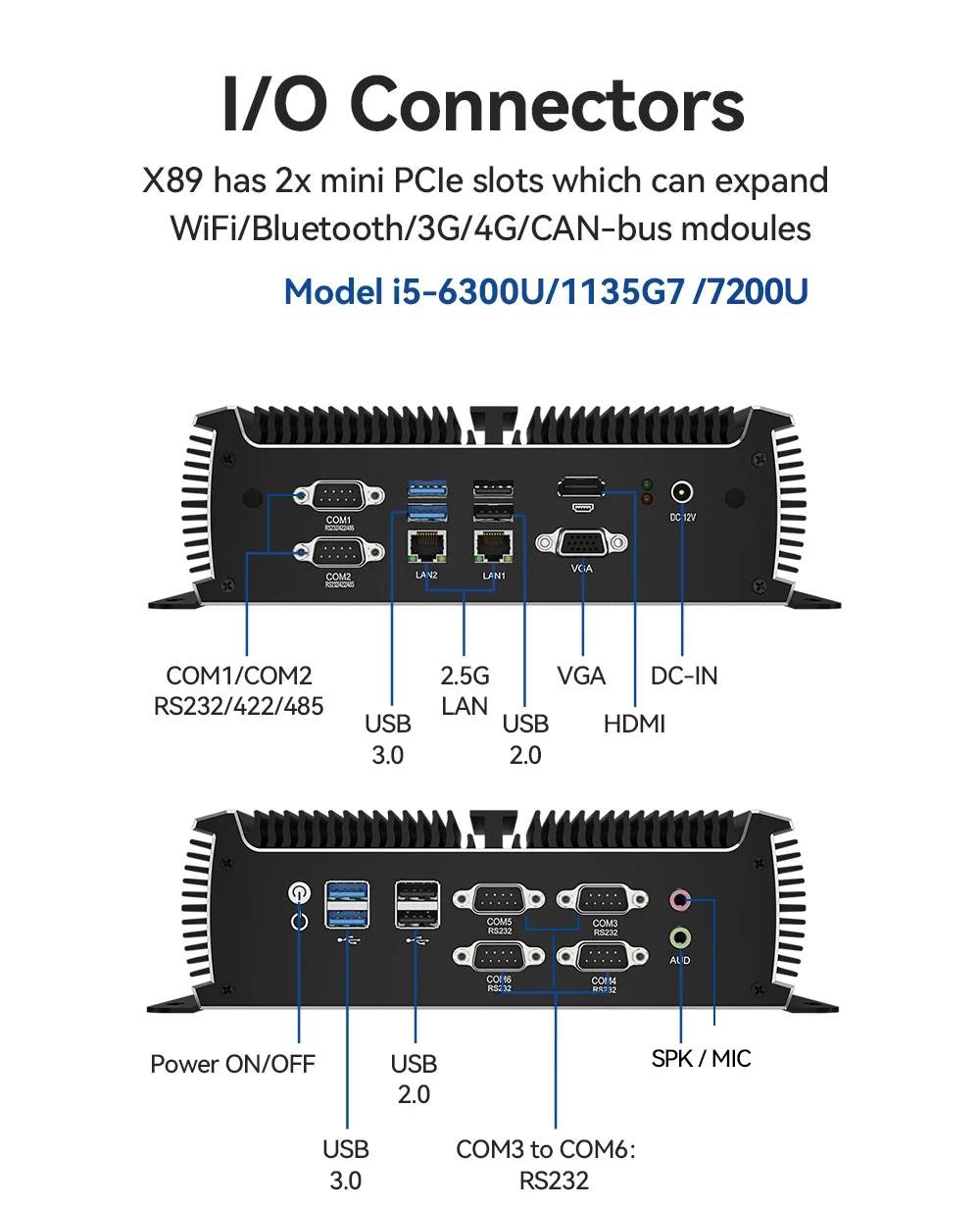 Comprar XCY-Mini PC sin ventilador X89 Industrial IPC, Intel i5-1135G7 6x COM RS232 RS485 2x Mini PCIe WiFi SIM 4G LTE CAN-Bus Windows Linux