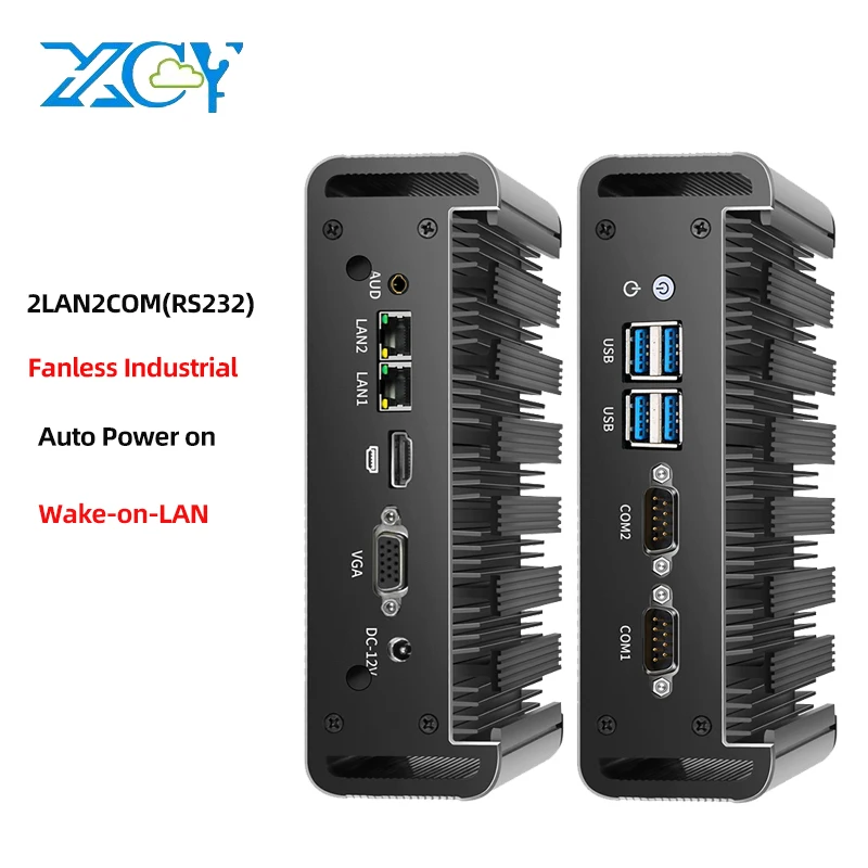 Comprar XCY Mini PC sin ventilador con i3-5005U compatible con computadora compacta WiFi para uso industrial con 2xRS232 DB9 2xLAN 4xUSB3.0 WIN10Pro Ready