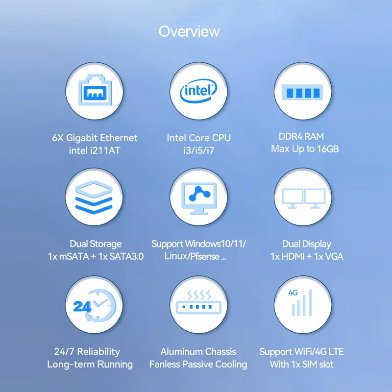 Comprar XCY Pfsense Firewall Router Mini PC Intel Core i7-6500U 6x Intel Ethernet i211AT Puertos LAN Compatible con WiFi 4G SIM Win 10/11 Linux