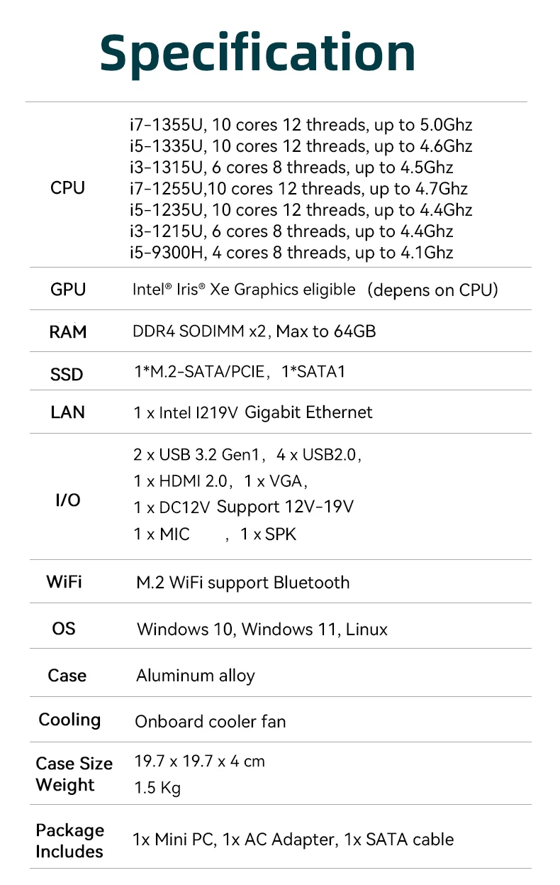 Comprar XCY X26 Mini PC Intel Core i7-1355U 12/13a generación Procesadores DDR4 M.2 NVMe SSD Windows 10/11 WiFi6 Computadora de oficina