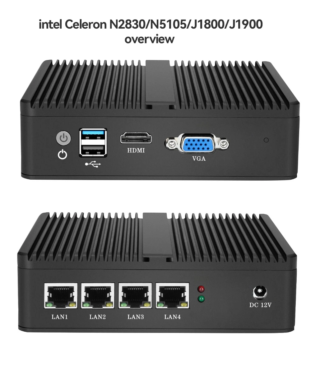 Interfaces de red | J4125/N5105/1J900/N2830 : 4x tarjeta de red intel i225V 2,5G J1800 : 4 x tarjeta de red gigabit intel i211AT |
