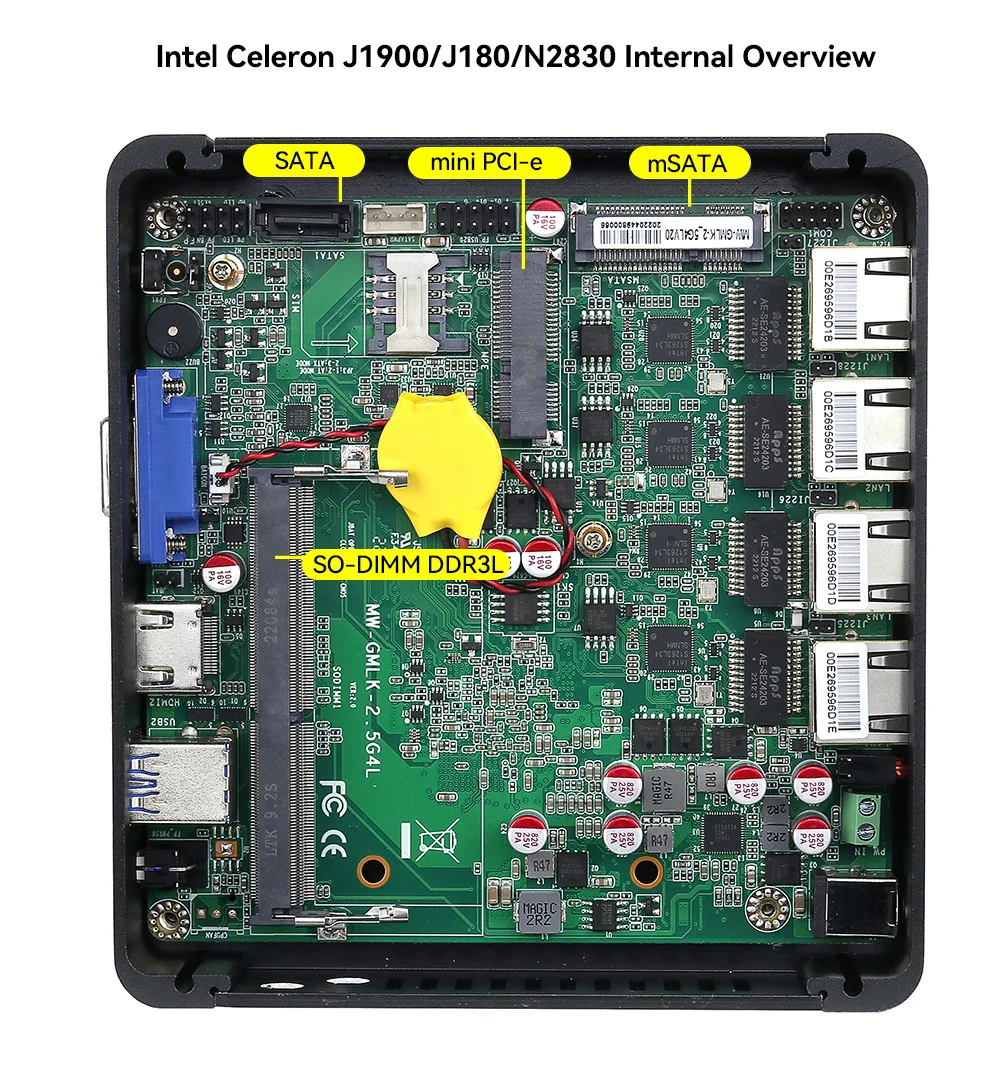 Tarjeta de memoria | J4125/N5105: SO-DIMM DDR4 2400MHz J1800 J1900 N2830: SO-DIMM DDR3L 1333/1600MHz |