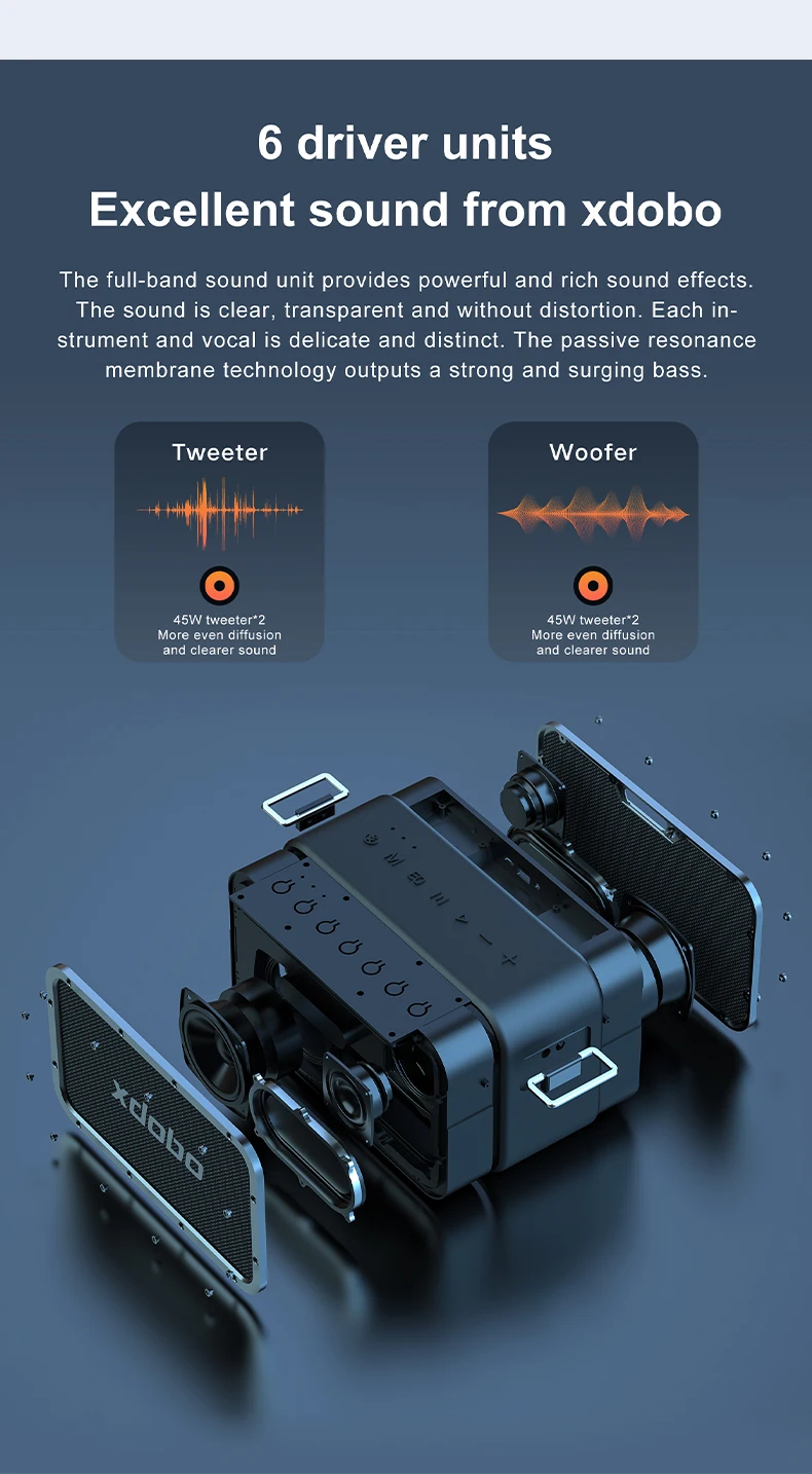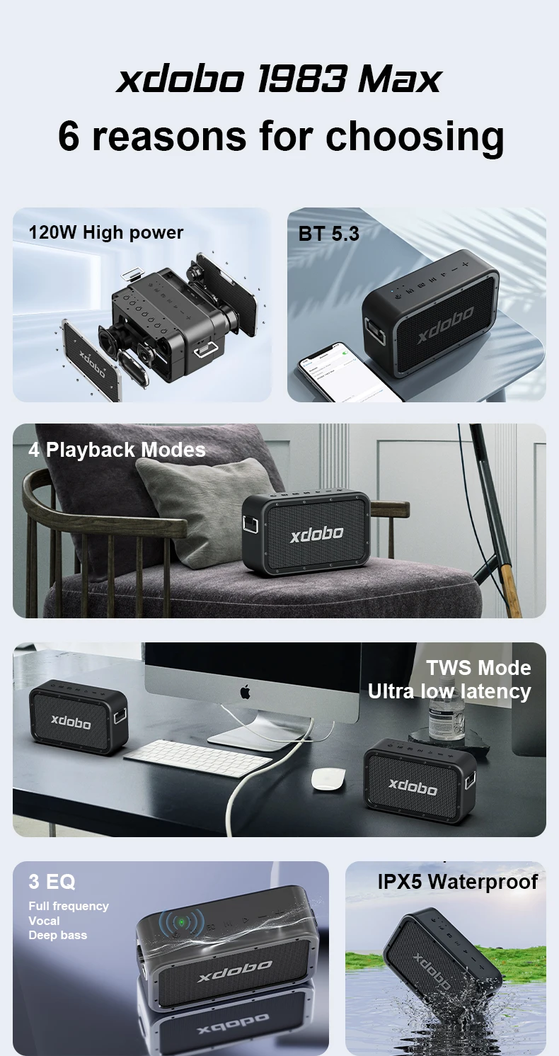 XDOBO 1983 MAX 120W Altavoz compatible con Bluetooth Inalámbrico Subwoofer impermeable Estéreo Surround Soporte TWS TF AUX Función de Banco de energía