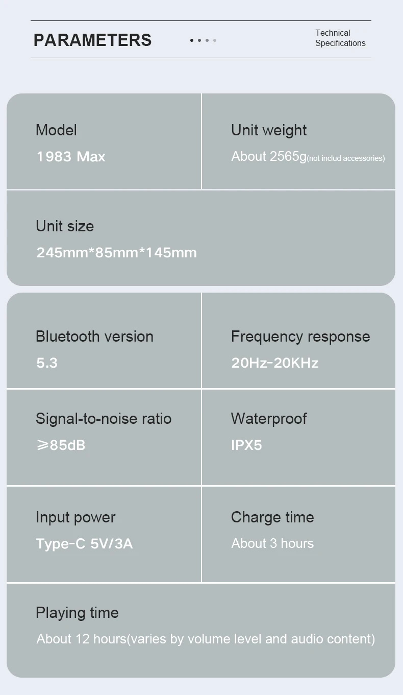 Tiempo de reproducción de música: Hasta 12 horas (varía según el nivel de volumen y el contenido de audio)