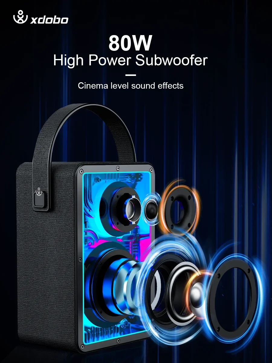 XDOBO potente 80W memoria 1972 Subwoofer inalámbrico altavoz portátil impermeable llegada altavoz de graves compatible con Bluetooth HIFI