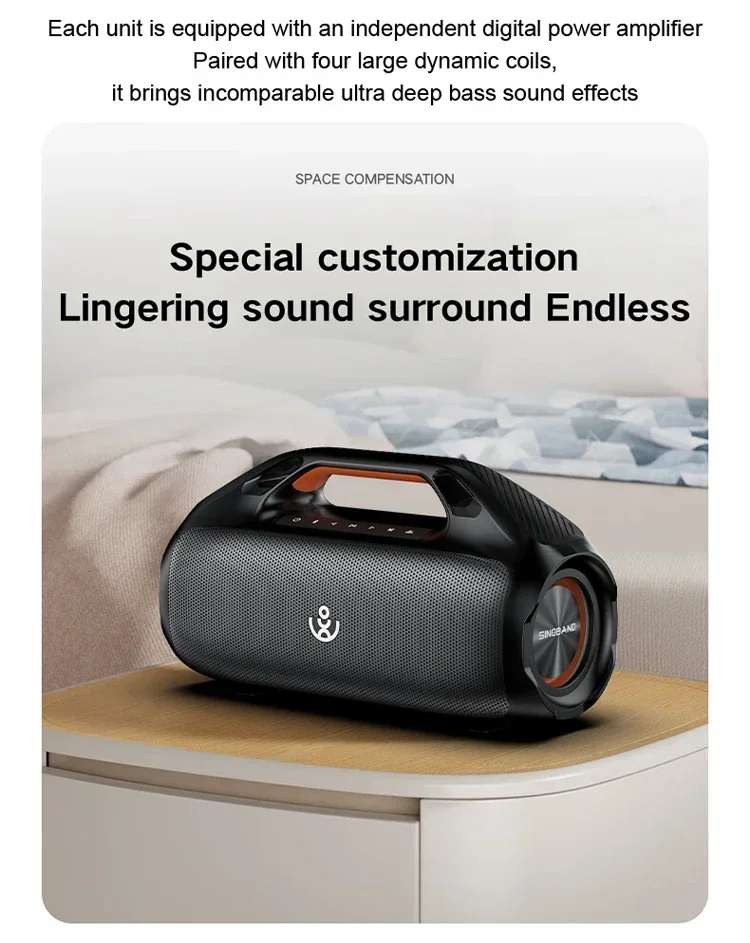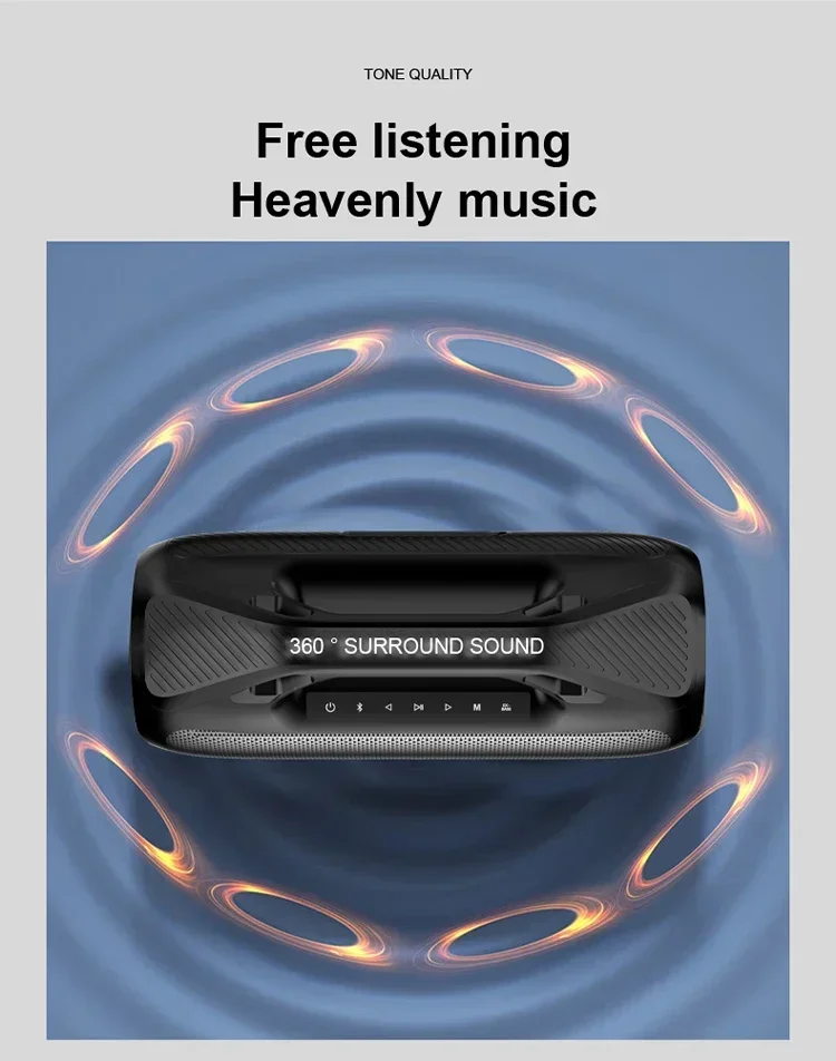 Versión de Bluetooth: 5,3 Respuesta de frecuencia: 20 Hz-20 KHz Relación señal-ruido: 90 dB Tiempo de carga: aproximadamente 2 horas Potencia de entrada: ACIN 100 V ~ 250 V Tiempo de reproducción: aproximadamente 20 horas (varía según el nivel de volumen y el contenido de audio) Tamaño (L *W*H):403*167*223mm Peso: 4980g