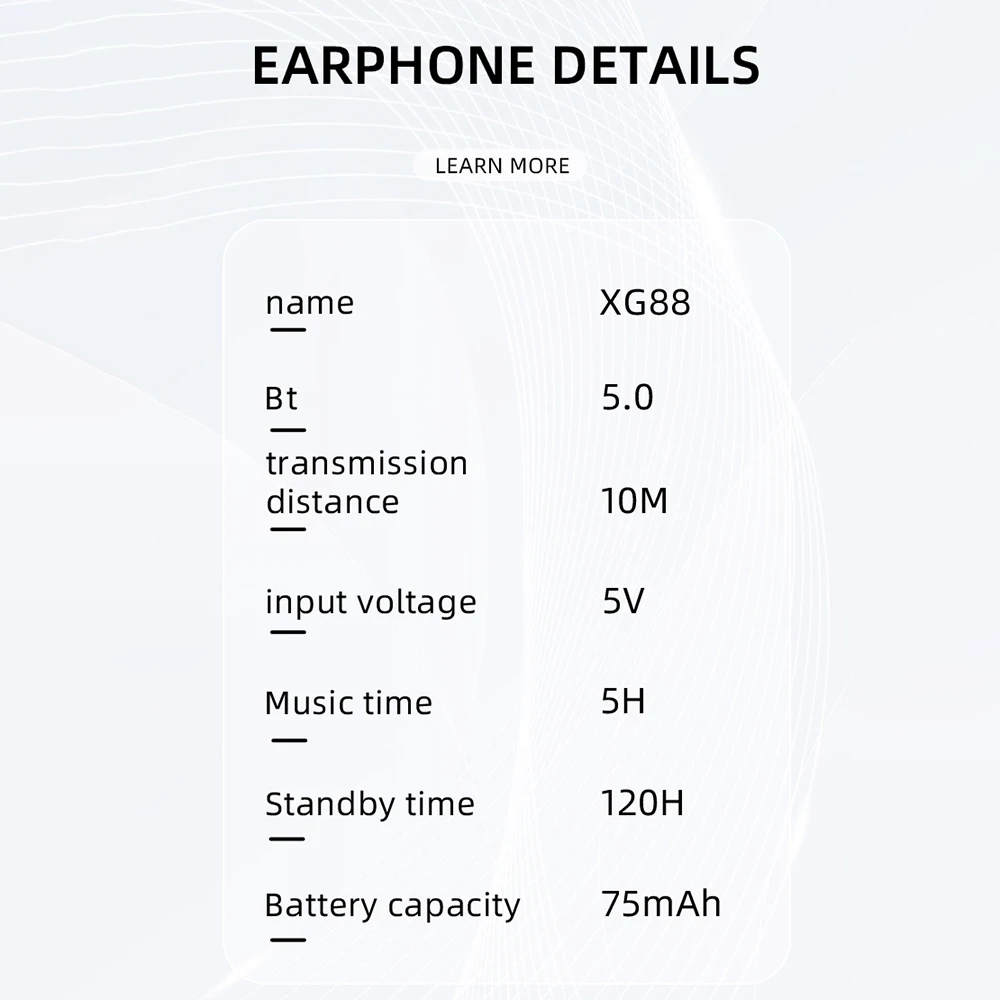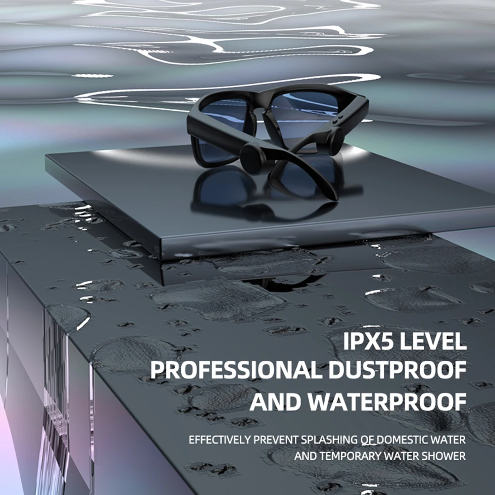 Características:1. Experiencia auditiva abierta/sonido estéreo de alta definición/llamada de audio Bluetooth/control de voz.2. Nivel IPX5 profesional contra el polvo y resistente al agua, evitando eficazmente las salpicaduras de agua doméstica y la inmersión en agua a corto plazo.3. Batería de plena potencia y larga duración, equipada con una gran capacidad de 75MAH * 2 baterías duales, carga rápida en 2 horas, espera durante aproximadamente 5 días, conversación continua durante 5 horas, espera continua durante 5 días, reproducción continua de música durante 4 horas y carga rápida en 2 horas.4. La óptica resiste y siempre la luz azul de ambos ojos protege la salud, protegiéndolos del daño dañino de la luz azul. Con una alta transparencia y diferencia de color, la experiencia visual es cómoda y el campo de visión es claro.Especificaciones:Bluetooth: 5,05V5H120HDistancia de transmisión: 10 metros sin obstáculosVoltaje de entrada: 5VTiempo de música: 5 horasTiempo en espera: 120 horasCapacidad de la batería: 75MAHLista de embalaje:1 * Gafas Bluetooth1 * cable de carga1 * Instrucciones