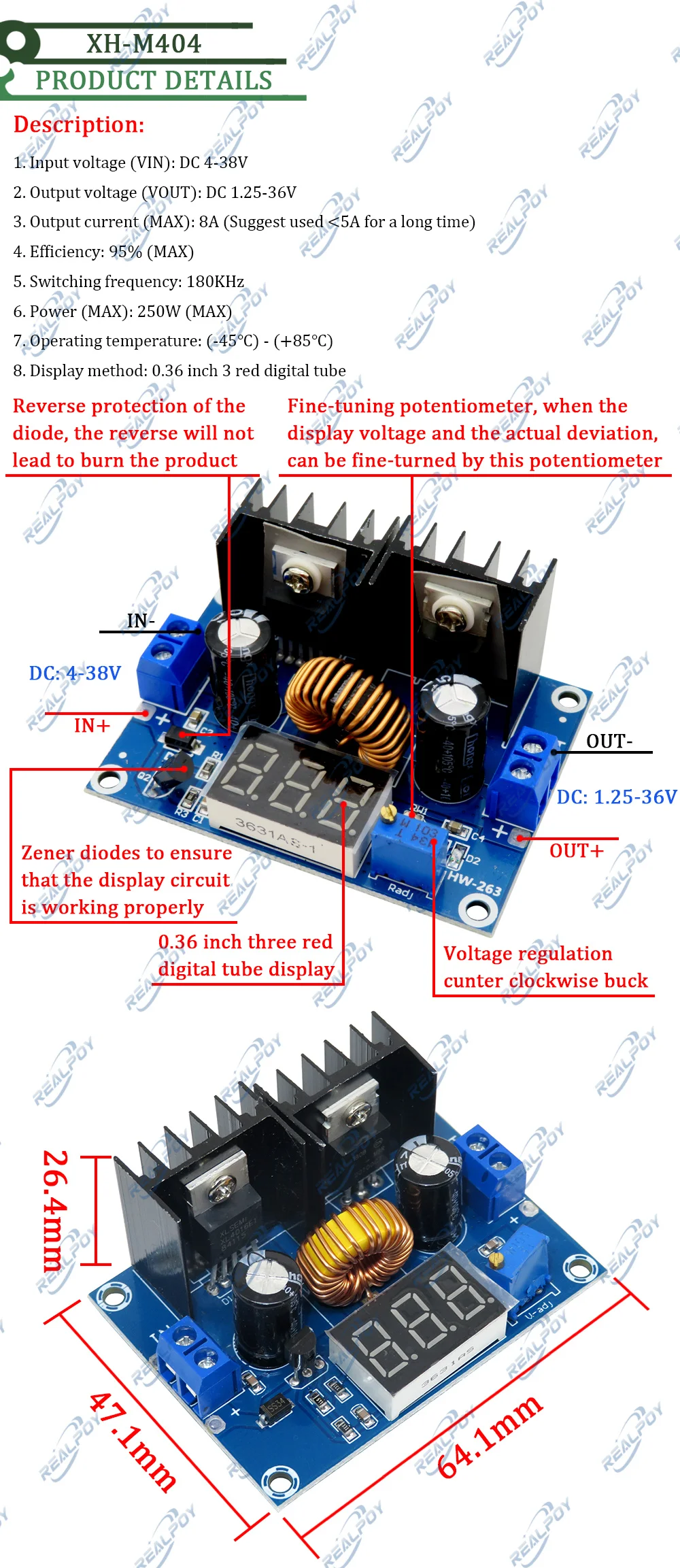 probé el regulador tambien es el 2do que compro y funciona muy bien. Tengo un transformador que entrega 12v sous 5 amp como alternativa, después del puente receptor y 2 condensadores químicos de filtración de 4700uf tengo 15 voltios en continuo. 15v es un poco demasiado para alimentar dispositivos que funcionan en 12v. Con el regulador tengo de 12 a 13v con menos de 5 amperios (necesitas una diferencia de al menos 2v entre la entrada y la salida). El producto +: muestra el voltaje de salida y tiene 5 amperios o más. Yo recomiendo.
