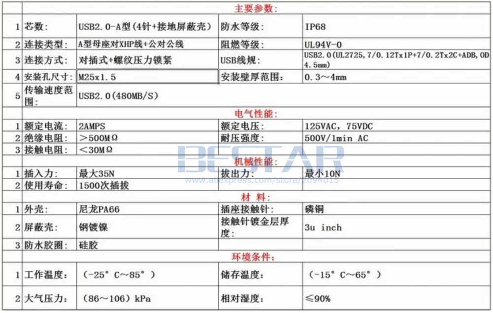 Conector de Cable de extensión impermeable estándar industrial XHP a USB 2.0 tipo A hembra M25 IP68 con tapa a prueba de polvo 3 pies 5 pies 10 pies