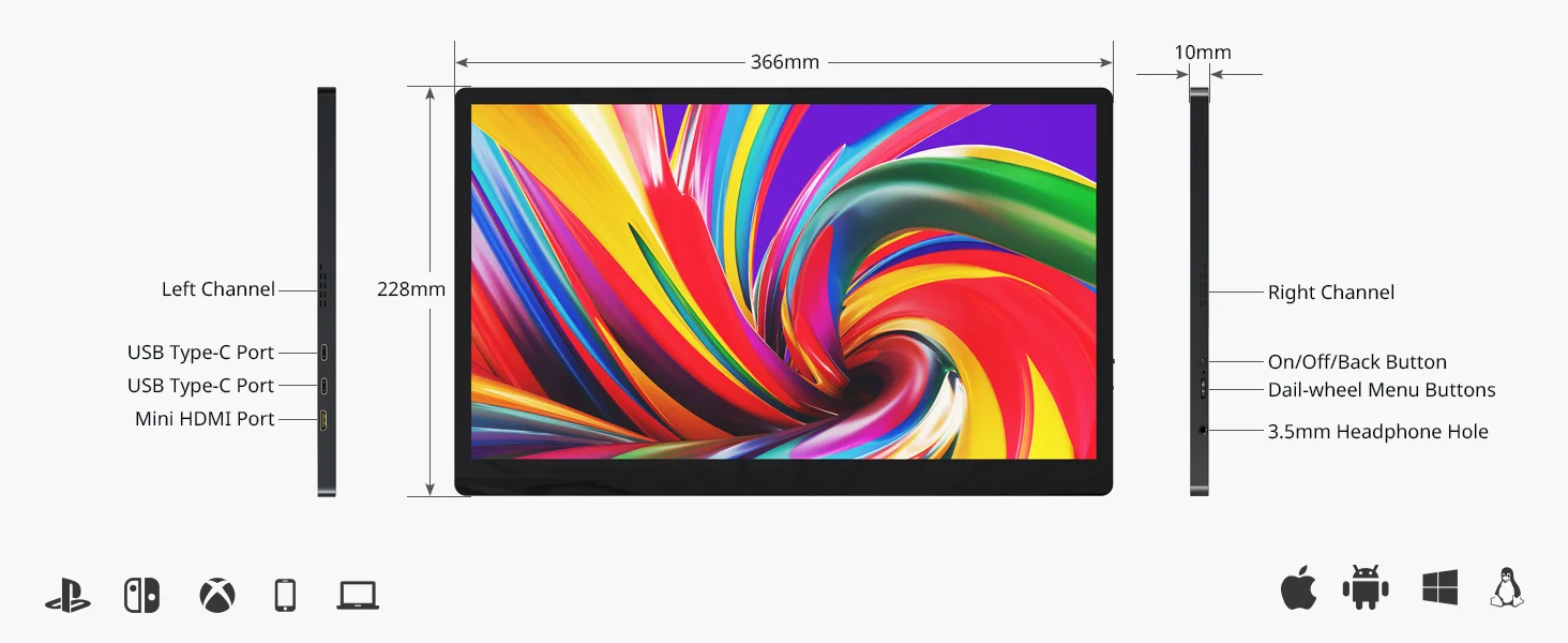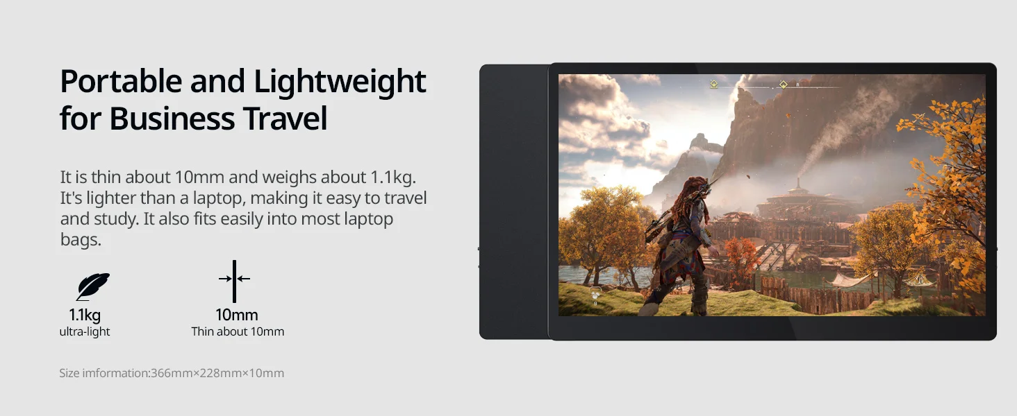 ▪[Fácil de llevar]El monitor portátil ultradelgado y ligero mide aproximadamente 700-1050G, fácil de llevar cuando viaja o sale a trabajar.