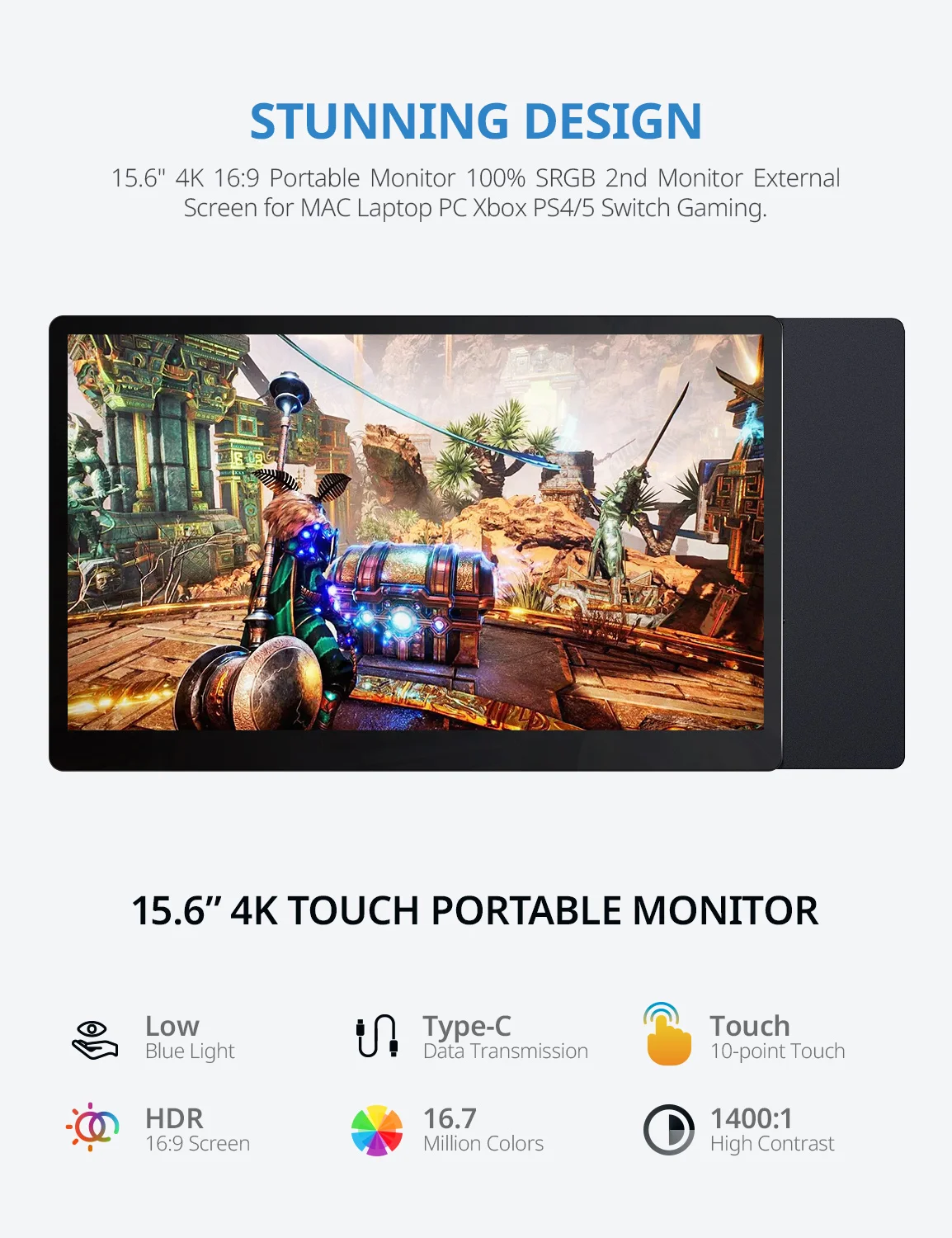 Comprar XIANWEI-Monitor portátil de 15,6 pulgadas para oficina, pantalla táctil IPS 100% sRGB, altavoces duales para ordenador portátil, XBox, PS45, Switch, Mini PC