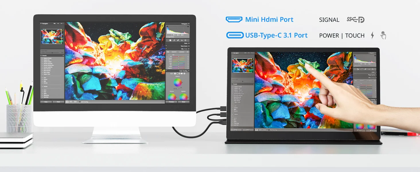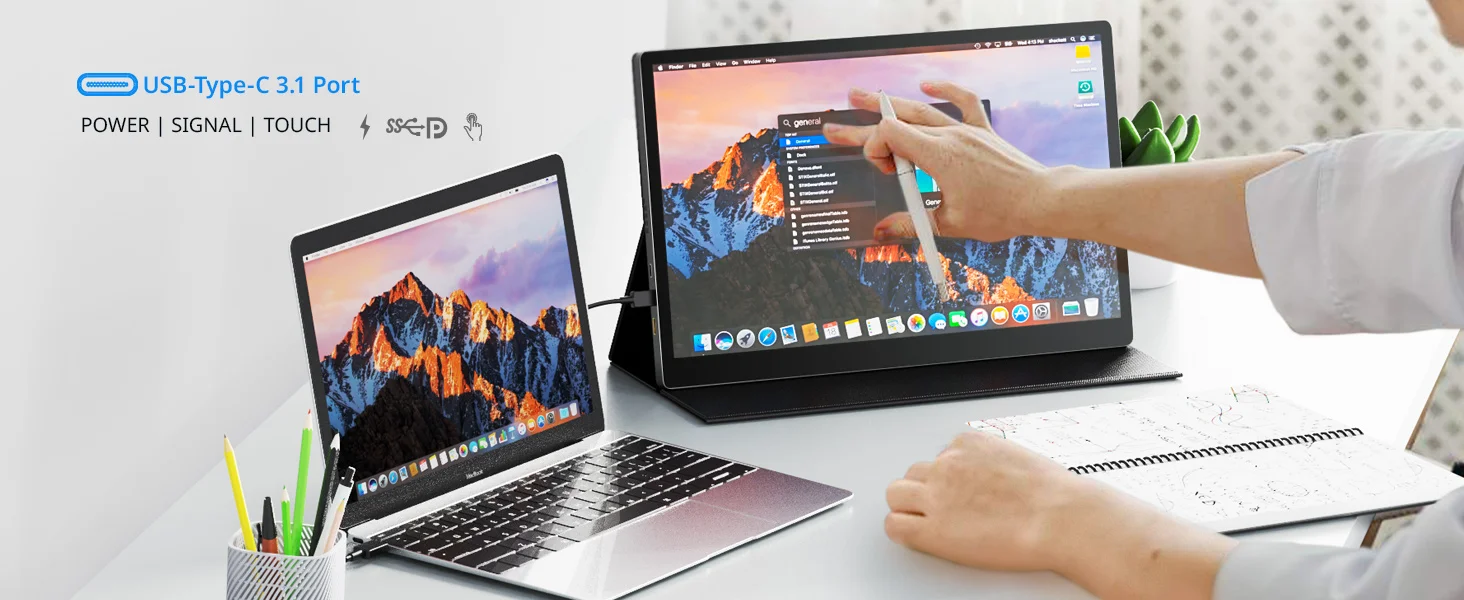 Respuesta: 1) Conecte el cable USB - C entre su ordenador portátil (PC) y el monitor, entonces el tacto funcionará.