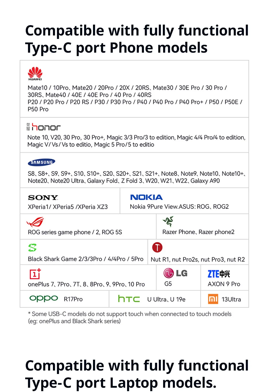 ▪[Ten Points Touch]La opción de la versión táctil es compatible con TOUCH, el cable USB A a USB C es para la función táctil.