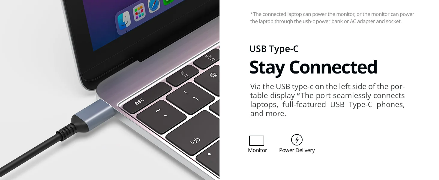 ▪[Conexión fácil]Admite conexión HDMI y USB C, y también admite solo un cable tipo C para funcionar si su computadora portátil tiene puerto Thunderbolts, pero tiene que conectar un cable de alimentación adicional si la batería de su computadora portátil no está en buen estado (lo mismo con el teléfono)