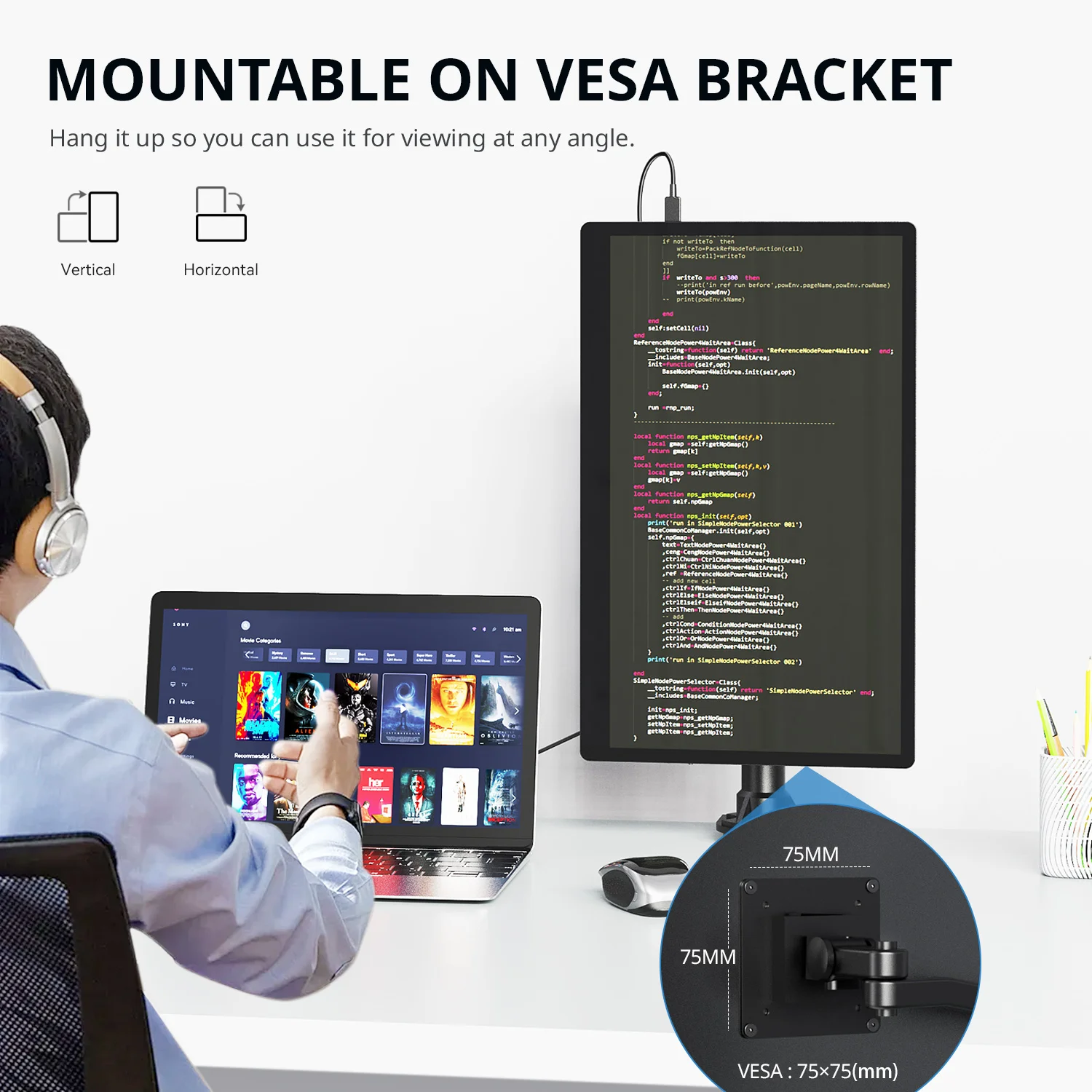 ▪[Pantalla horizontal o vertical]Puede ajustar la configuración cuando se conecta al escritorio o al portátil.