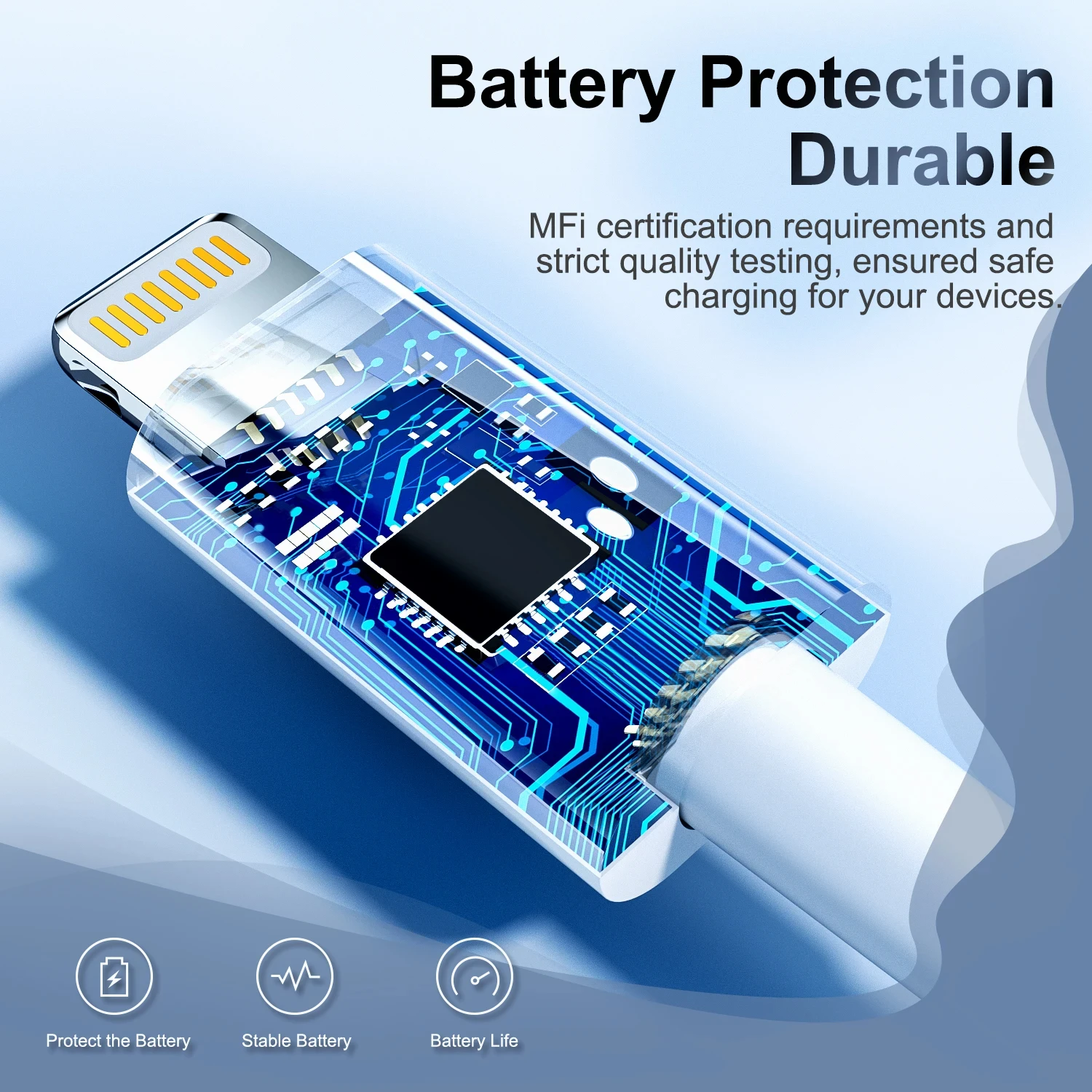 El cable de carga rápida ha pasado la certificación MFI y es totalmente compatible con el sistema IOS, sin advertencias ni pop-ups durante la carga.