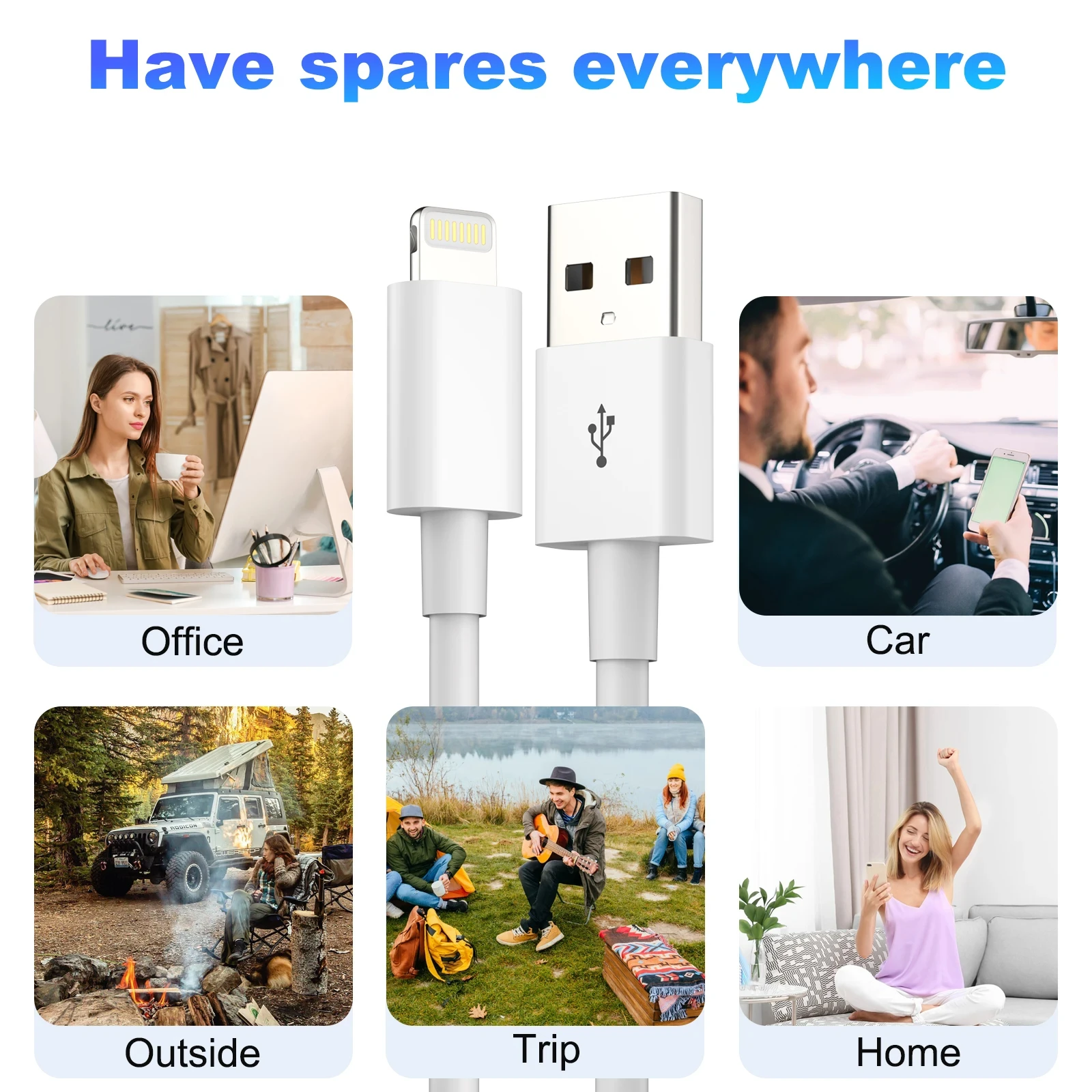 Cable de carga Apple original Xiaomi, adecuado para iPhone 10 pies, cable de datos USB A a Lightning, 14, 13, 11, XS, X, 8P 7 6 5