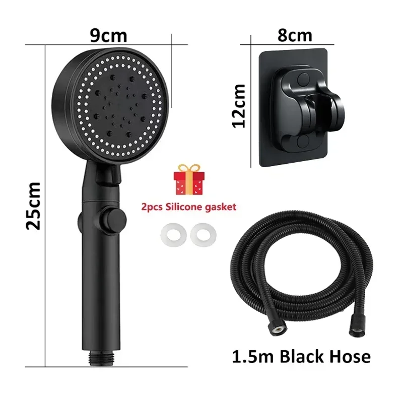Este cabezal de ducha viene con 5 modos: pulso/lluvia/mixto/masaje/pistola pulverizadora, cada modo ofrece la mejor experiencia de ducha; el agua es fina, densa y uniforme, lo que hace que la piel suave y se sienta cómoda.