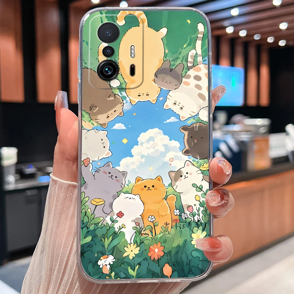 Comprar Para Xiaomi 11T 12T Pro Funda de teléfono encantador dibujos animados suave TPU transparente silicona parachoques para Xiaomi11T 12 T Funda ligera Capa