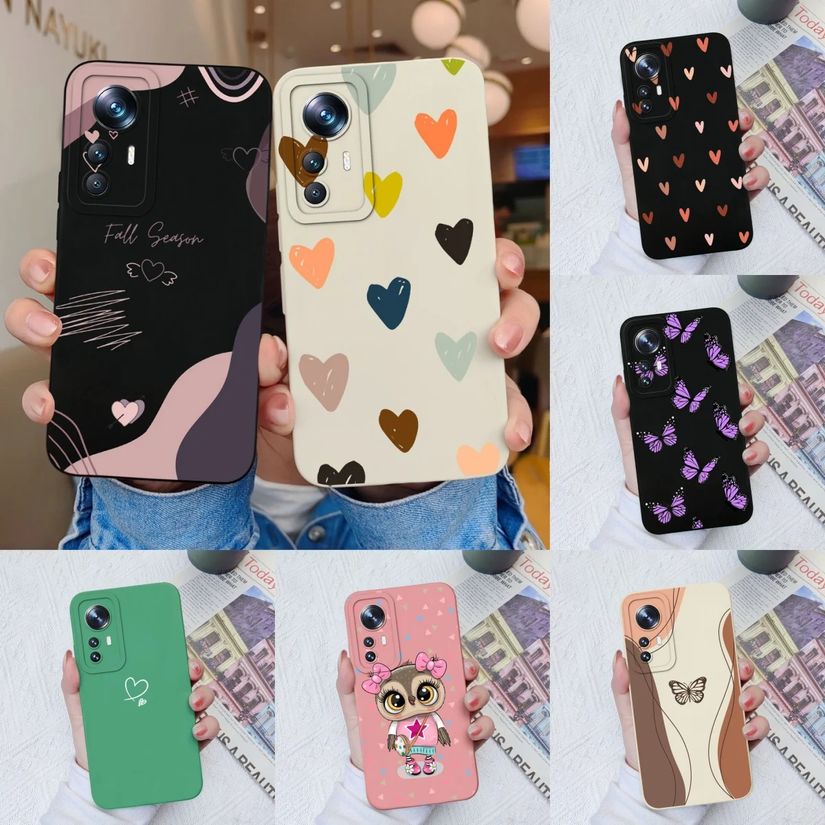 Comprar Para Xiaomi 12 Pro Lite Ultra fundas de teléfono mariposa gato corazón silicona líquida cámara protección Shell cubierta para Xiaomi12 parachoques