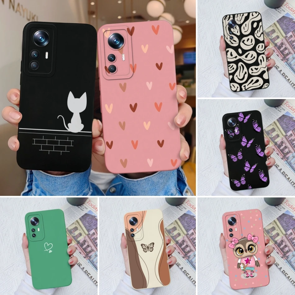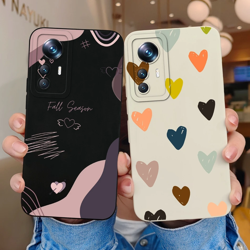 Para Xiaomi 12X 12T Pro funda de teléfono amor corazón gato líquido silicona protección de cámara cubierta para Xiaomi 12 X T 12TPro Fundas