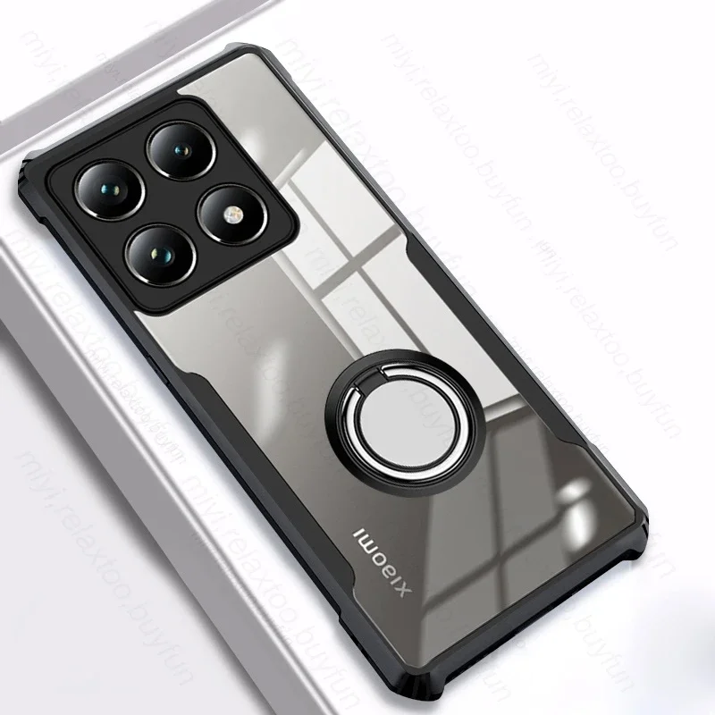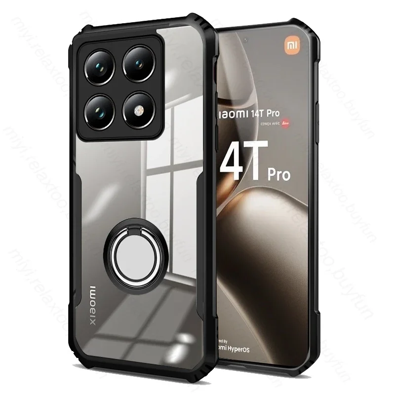 Comprar Para Xiaomi 14T Pro 5G funda resistente acrílica transparente soporte de armadura anillo a prueba de golpes funda magnética Xiaomi14T 14 T T14 14TPro 2024
