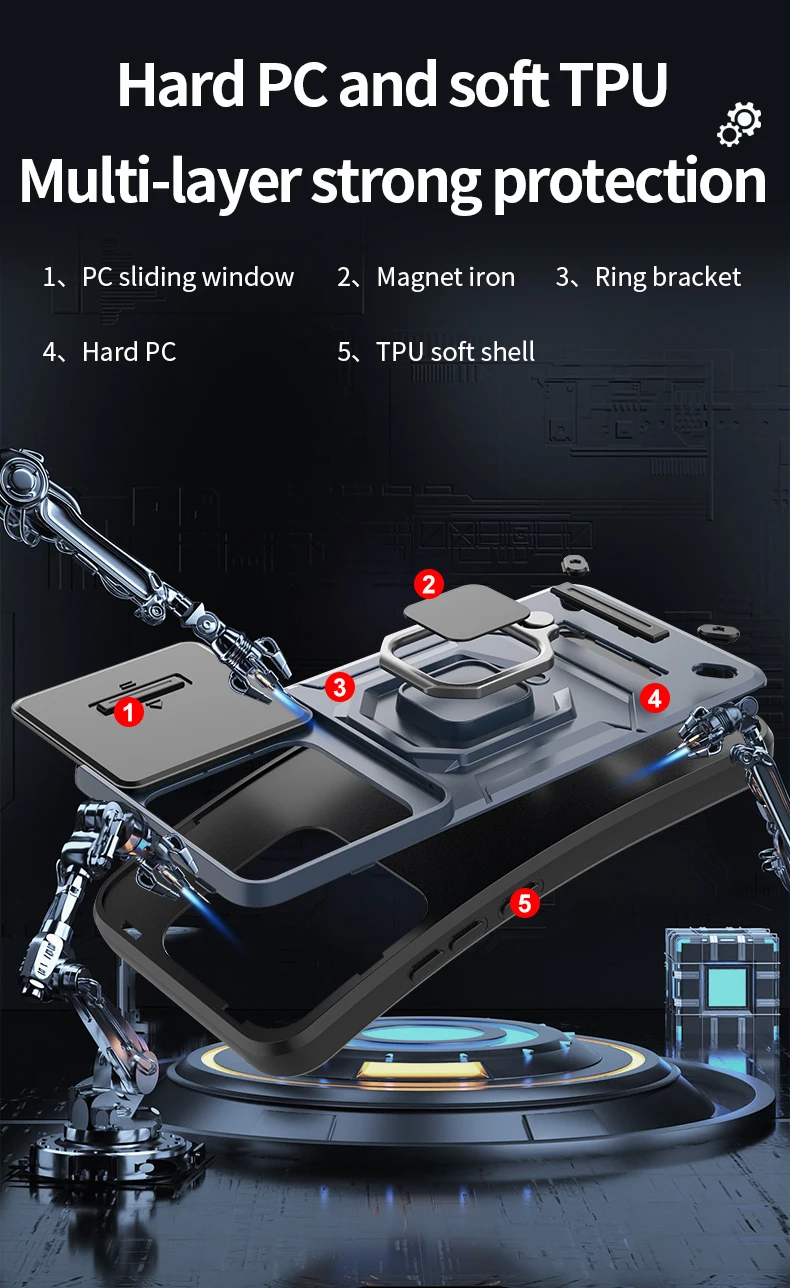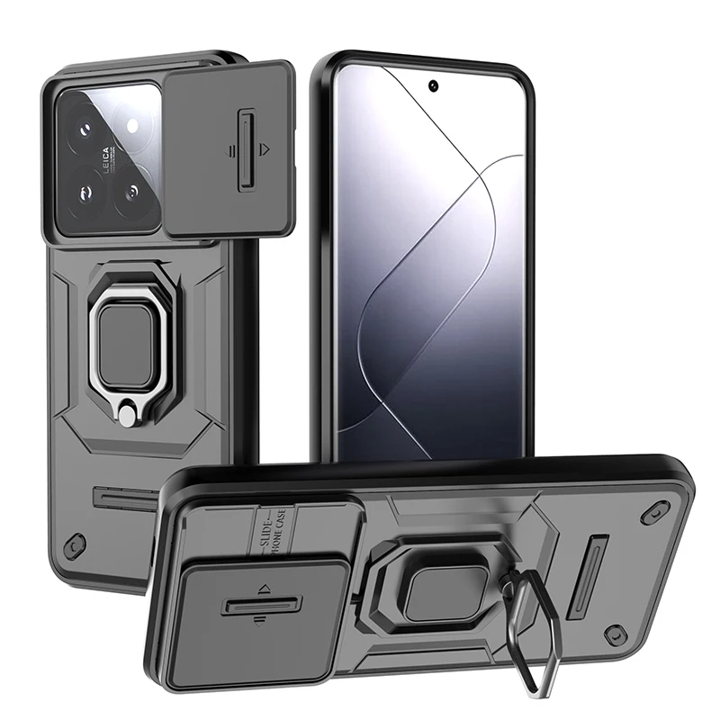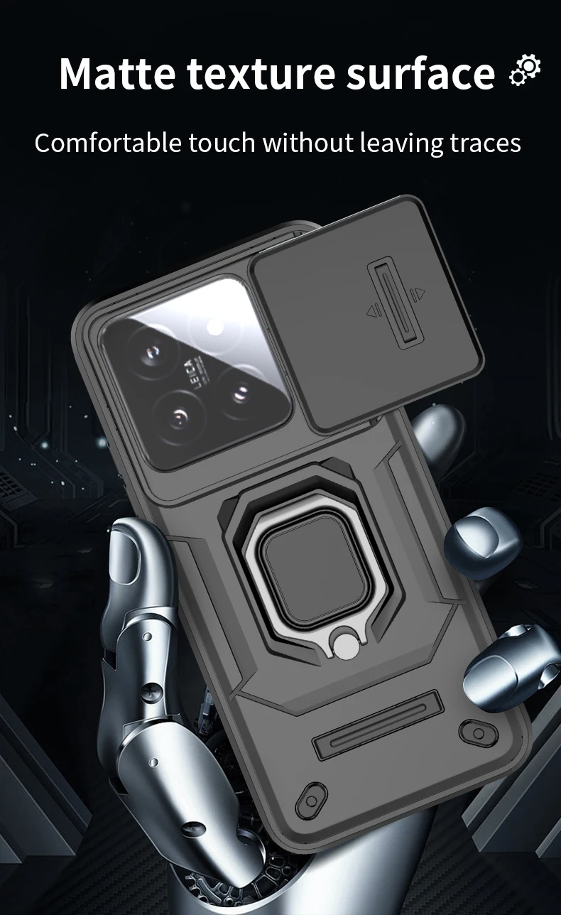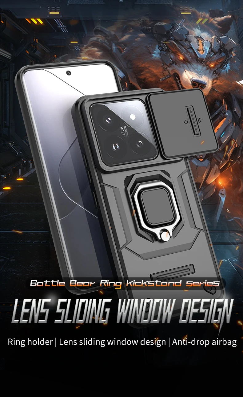 Para Xiaomi 14T Pro funda deslizante para ventanas Xiaomi 14T Pro Coque Fundas soporte de anillo de batalla funda trasera con lente de empuje Xiaomi 14T Pro