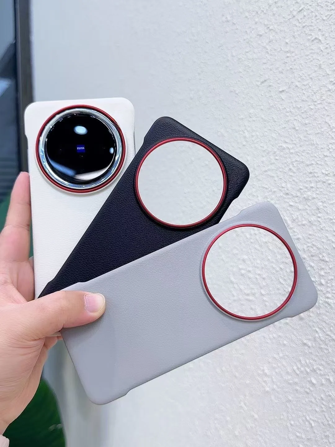 La funda no es de cuero, solo de plástico, el anillo se cae, pero es delgado.