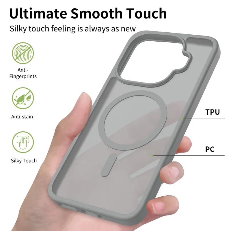 Backplane translúcido mate de PC duro + marco de TPU suave.