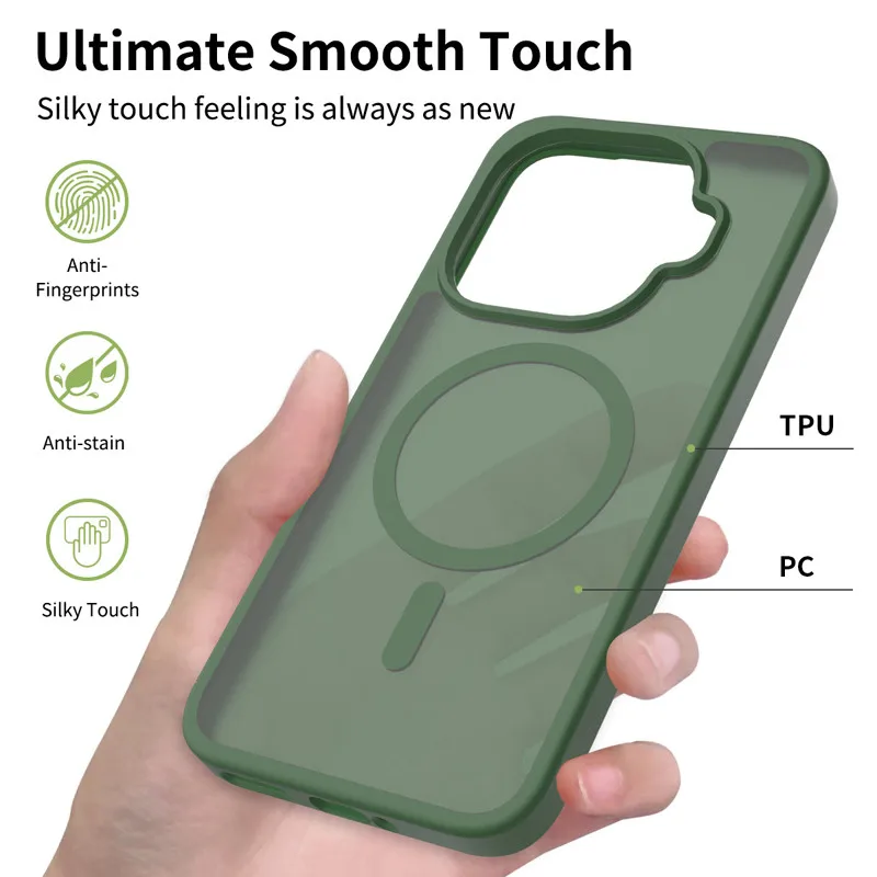 Admite accesorios magnéticos Mag-Safe. Es compatible con el soporte magnético para automóvil Mag-Safe, etc. Y además, es compatible con el cargador inalámbrico Mag-Safe. [Nota: Si el teléfono en sí no admite carga inalámbrica, la funda del teléfono solo tiene función magnética y no admite carga inalámbrica.]
