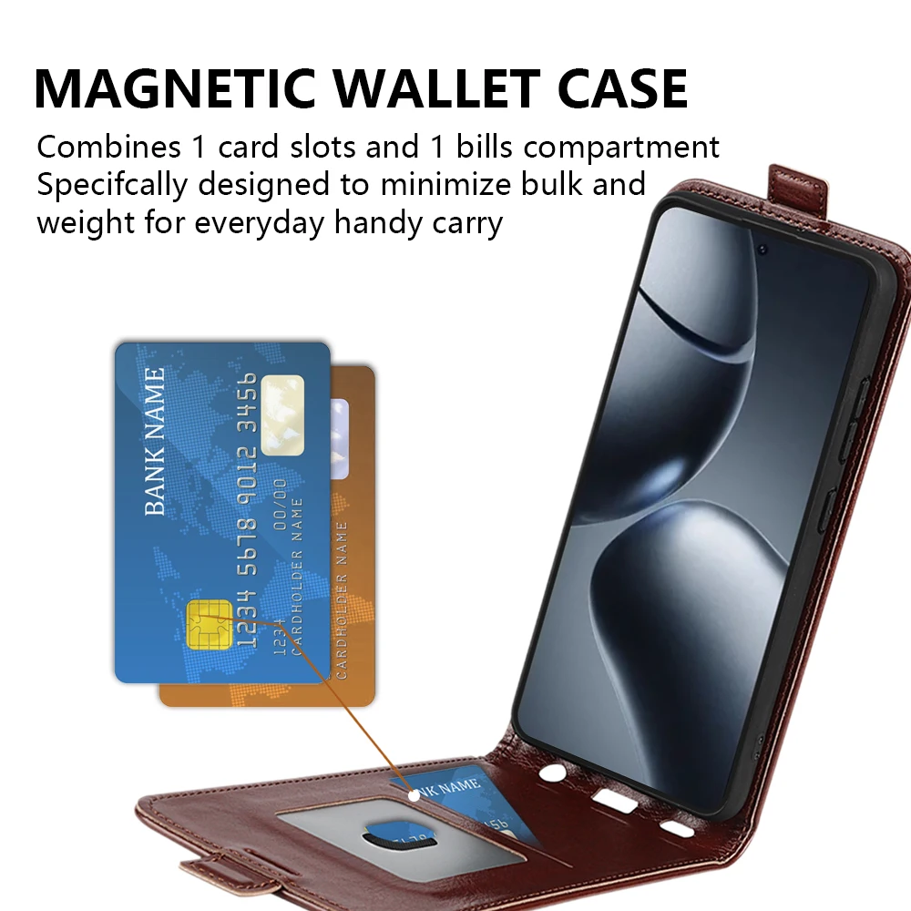 Para Xiaomi 15T Pro Funda de cuero con tapa funda suave cartera Vertical ranura para tarjeta de crédito de cuero para Xiaomi 15T Pro