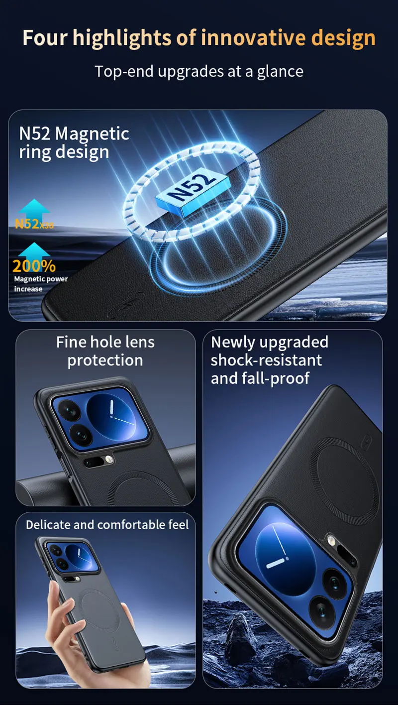 Para Xiaomi 17 Pro Max funda protectora de cuero magnética para Xiaomi 17 17 Pro alta calidad antihuellas antideslizante PC + TPU