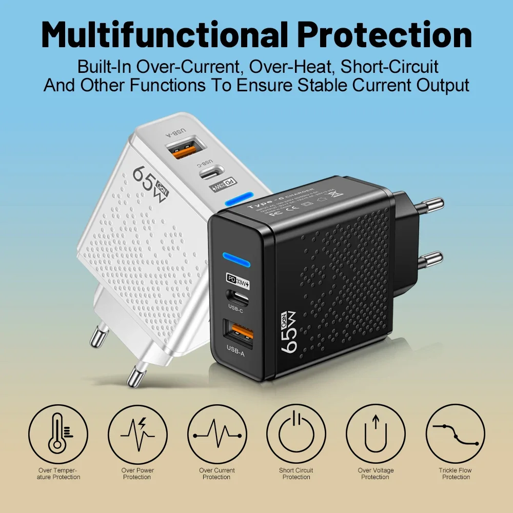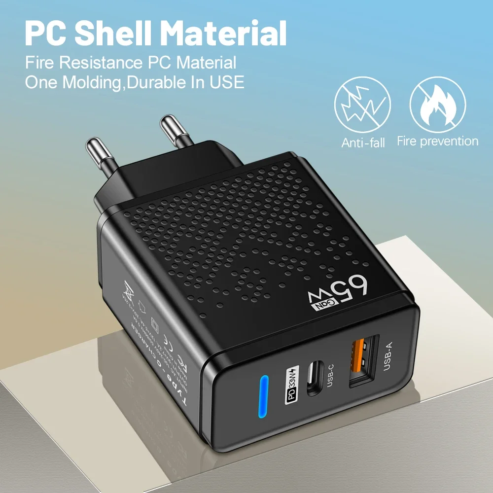 Este cargador USB de 65 W es un compañero de viaje imprescindible y potente.Su alta potencia de salida y su tecnología de carga rápida le permiten cargar rápidamente varios dispositivos mientras viaja, ahorrando un tiempo valioso.